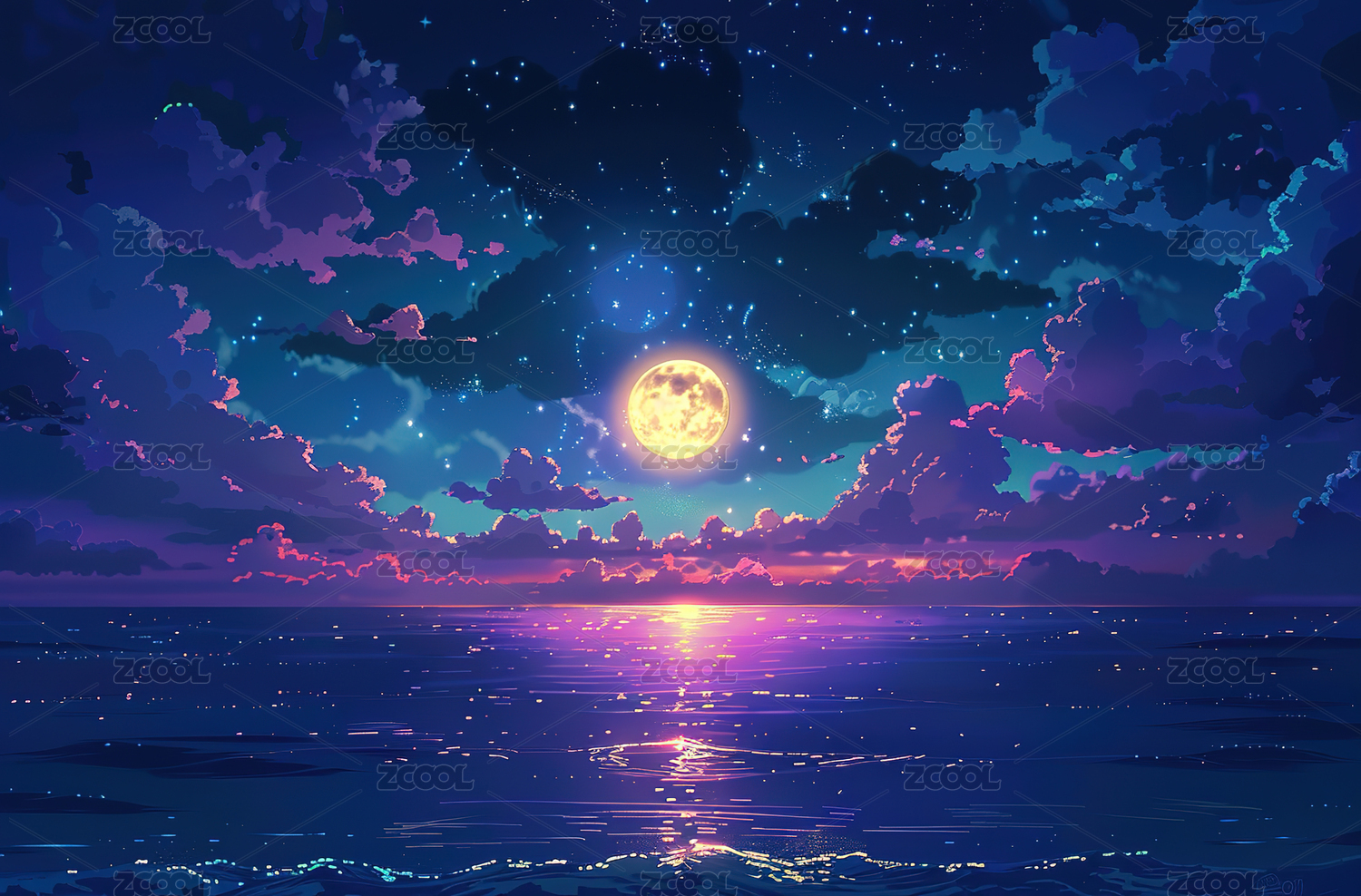 梦幻星空日落海景