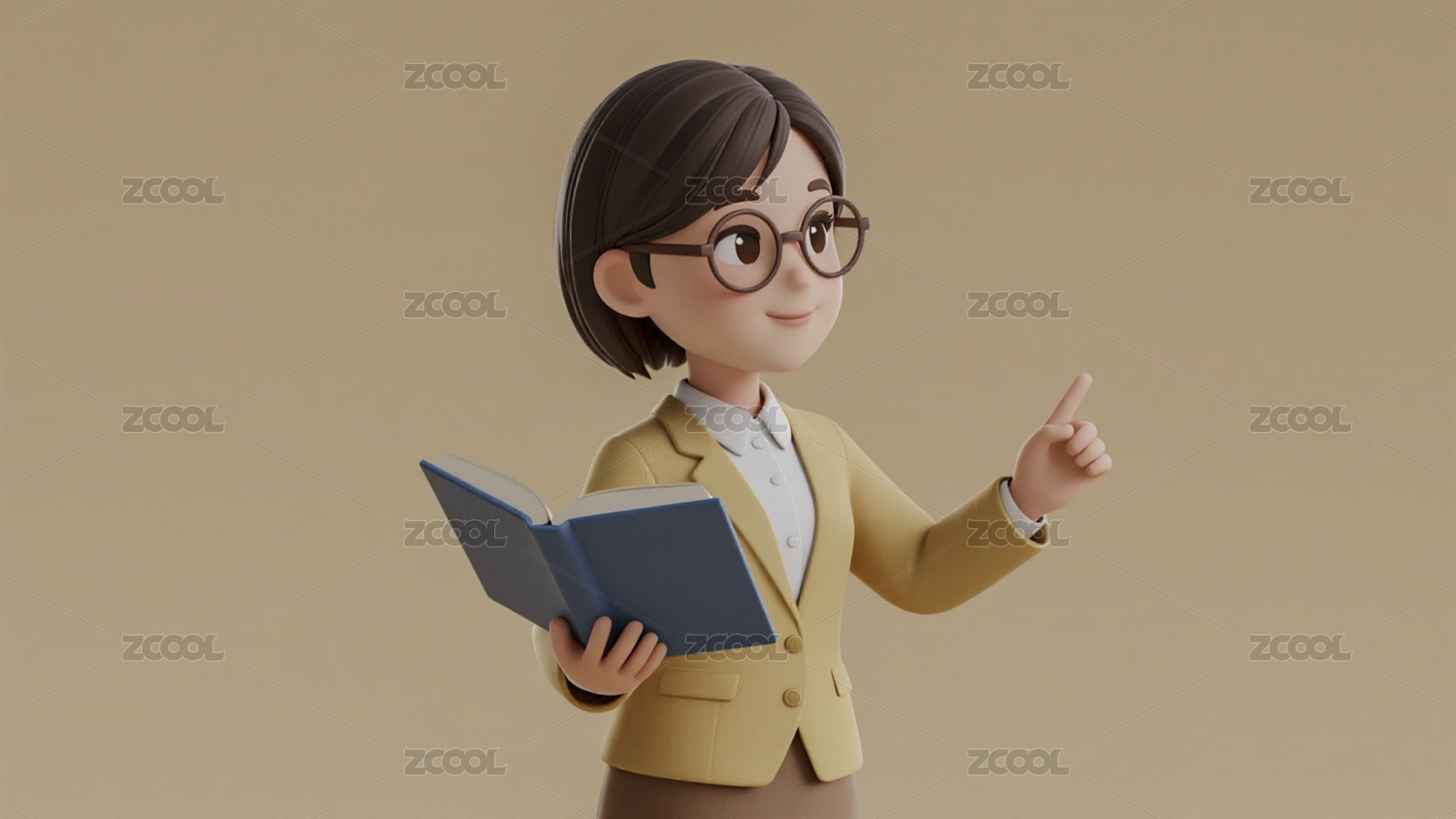 Q版3D卡通金融商务教育人物写字备课插画