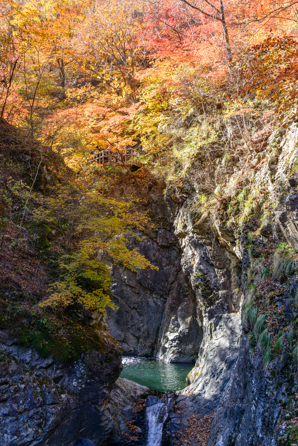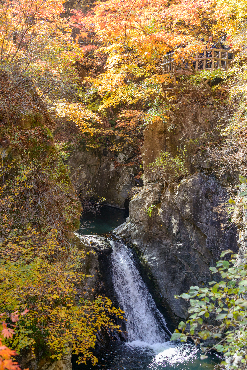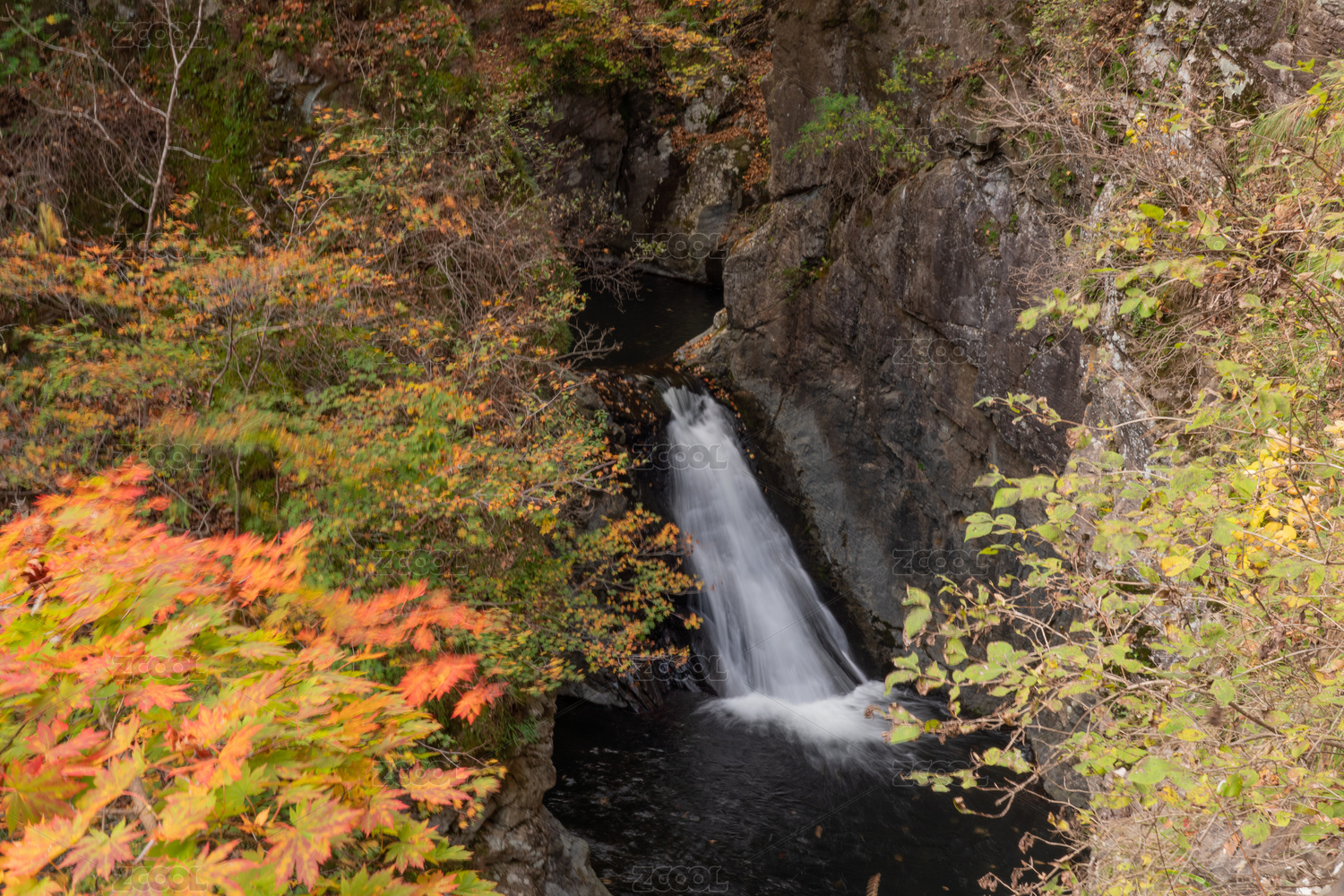 辽宁本溪老边沟大石湖景区枫叶瀑布景观