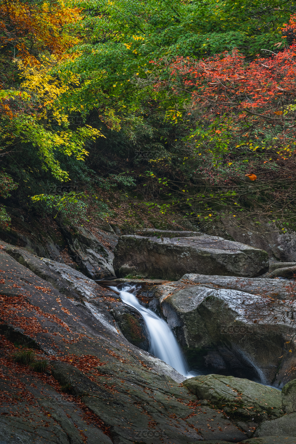 沈阳本溪老边沟,秋季枫树红叶溪流自然风光