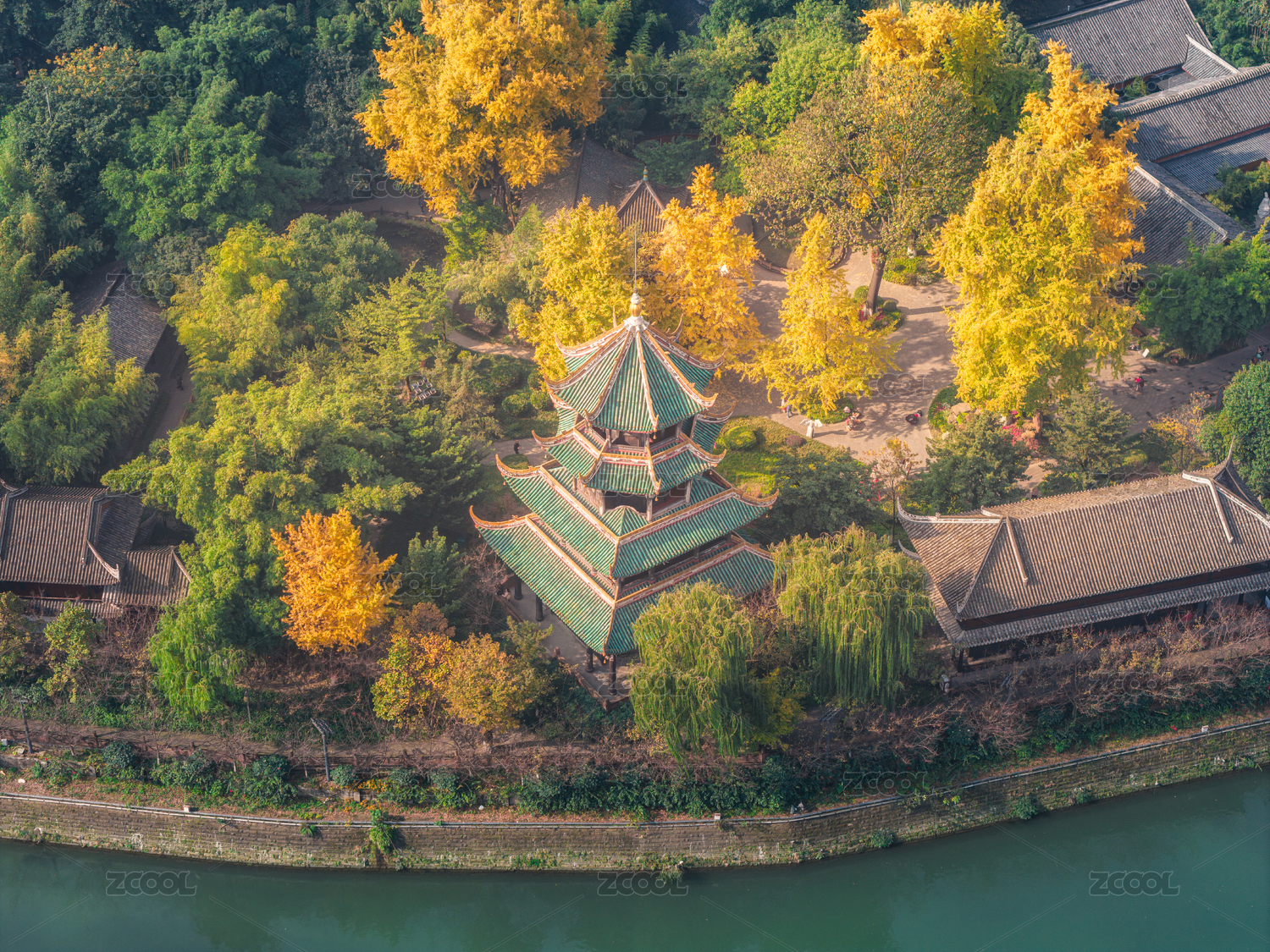 成都望江楼公园府南河航拍城市风光白昼俯拍