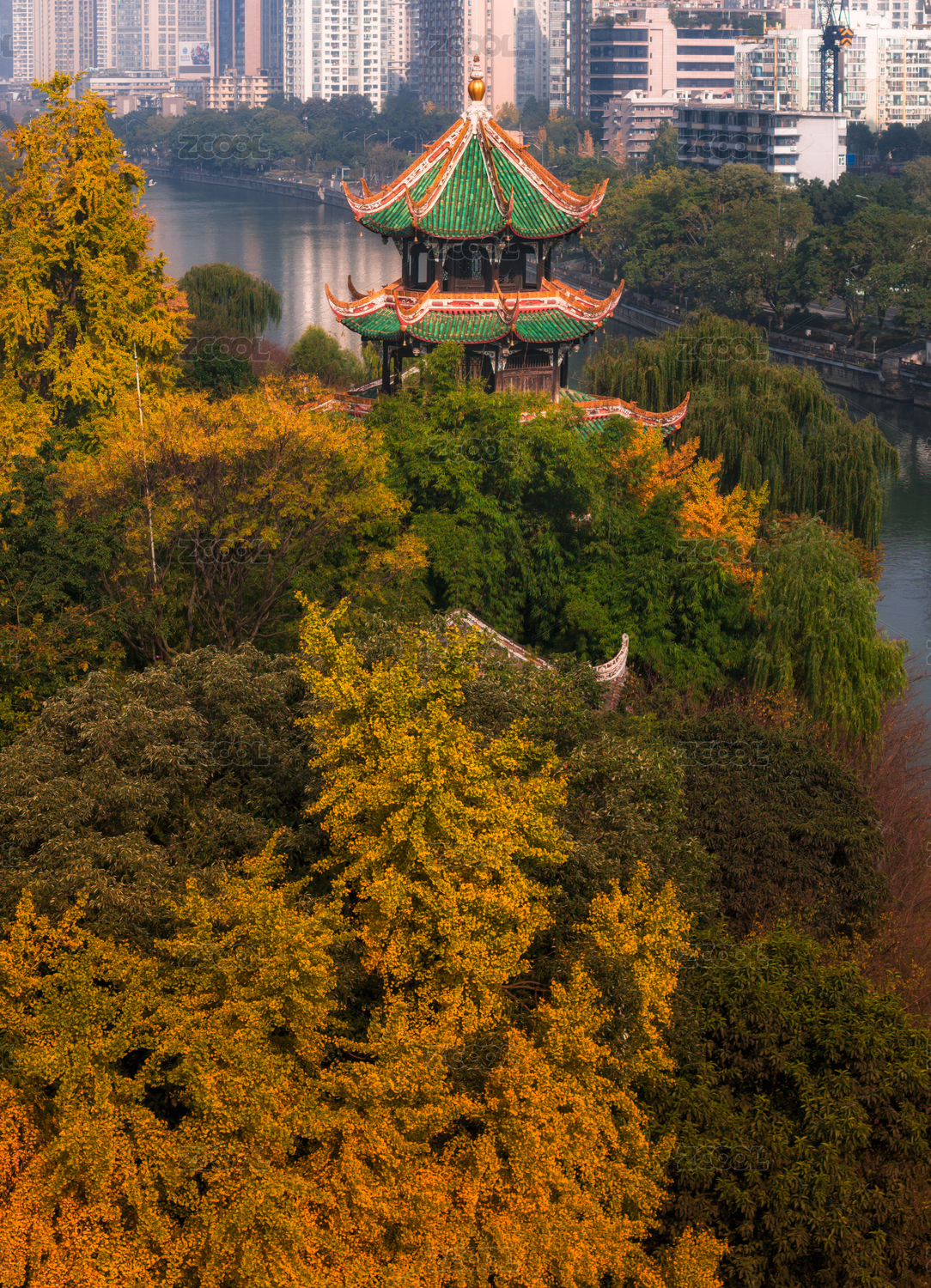 四川,成都,中国,锦江,望江楼,望江楼公园,望江公园,府南河,城市,秋季
