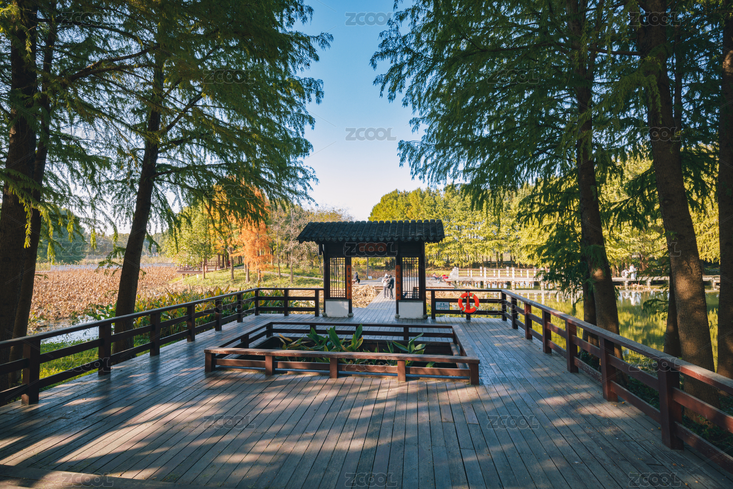 江苏省苏州市 虎丘湿地公园的秋日风光图景