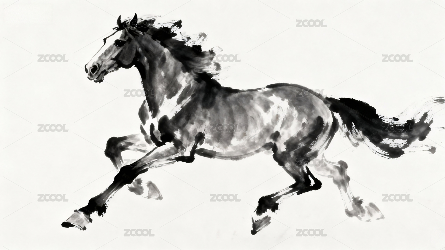 水墨风格奔跑的骏马