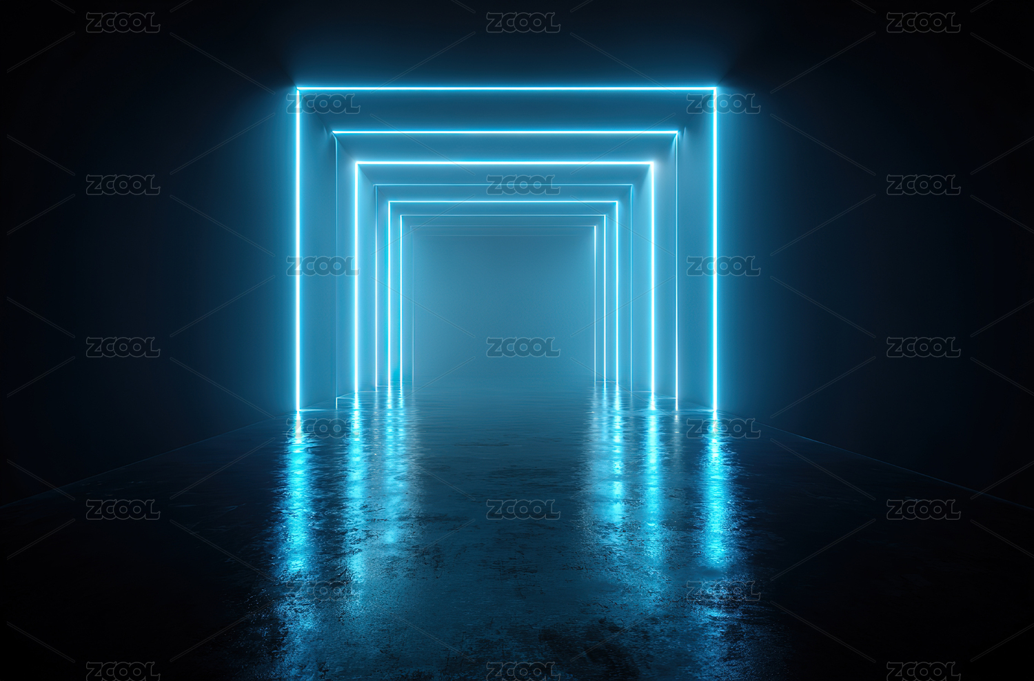 蓝色霓虹灯隧道的未来感场景