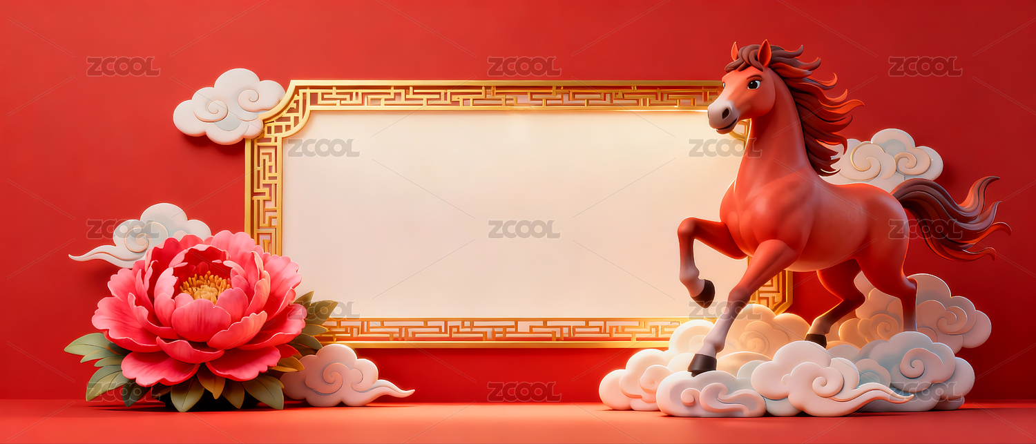 马年,生肖,动物,马,骏马,战马,赤兔马,2026,Q版,海报