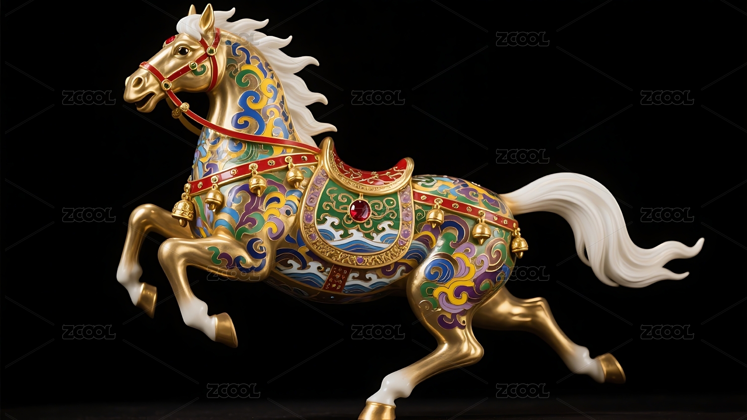 陶瓷,3D,釉面,光泽,小马,摆件,景泰蓝,配色,极简,高级