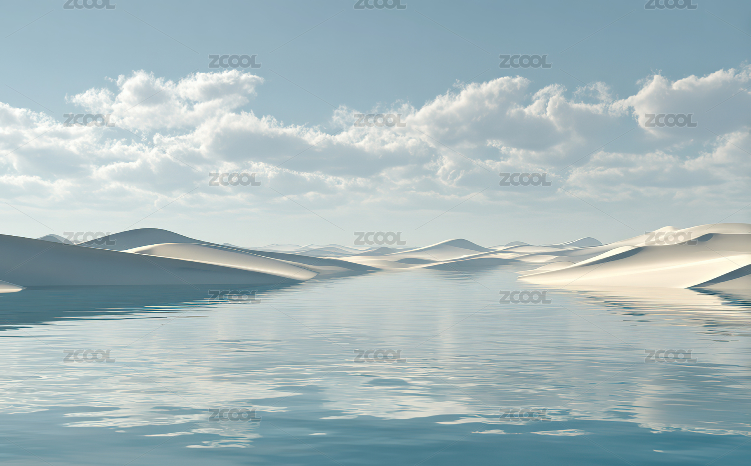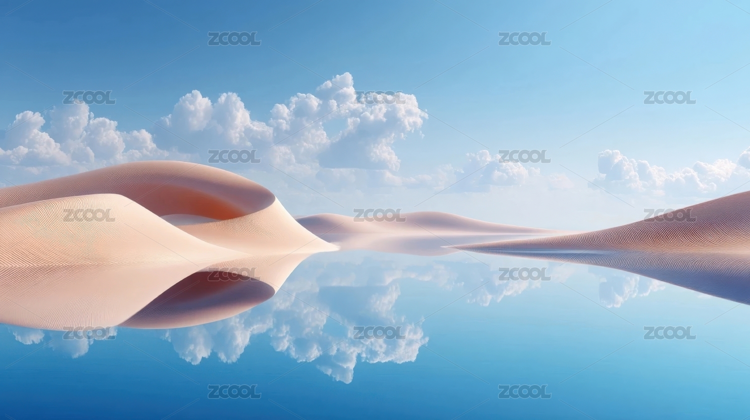 沙漠,倒影,蓝天,沙丘,宁静,自然,天空,景观,地貌,云朵