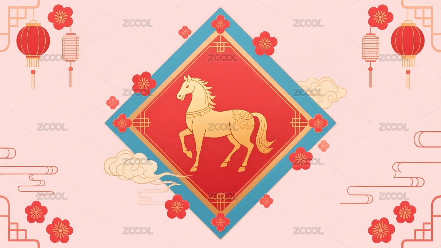 金色骏马与传统灯笼装饰