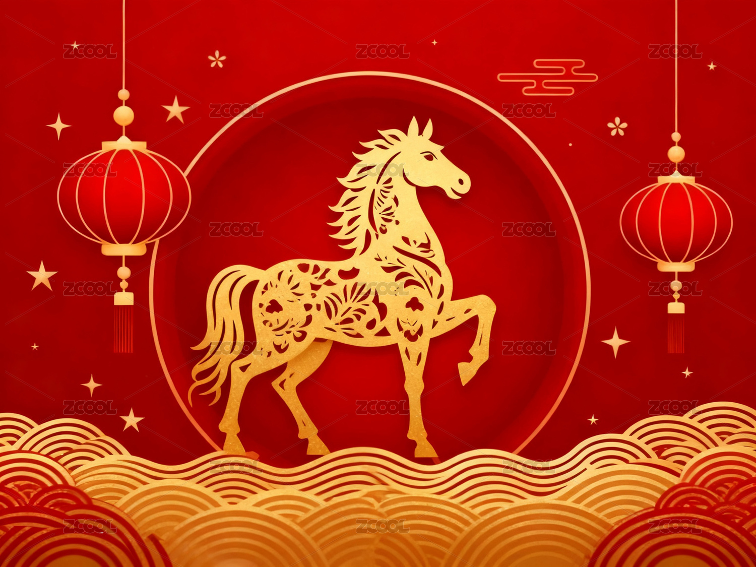 金色骏马新年贺图