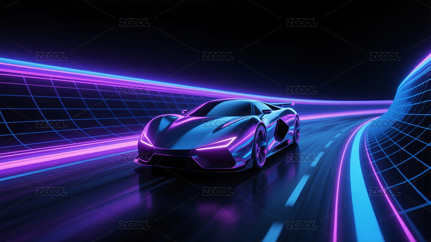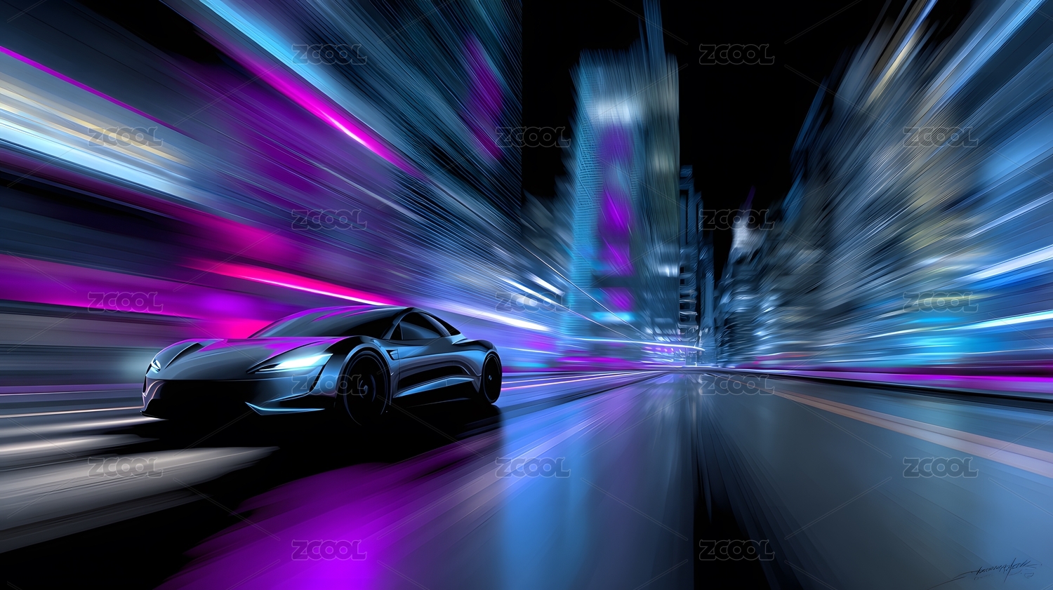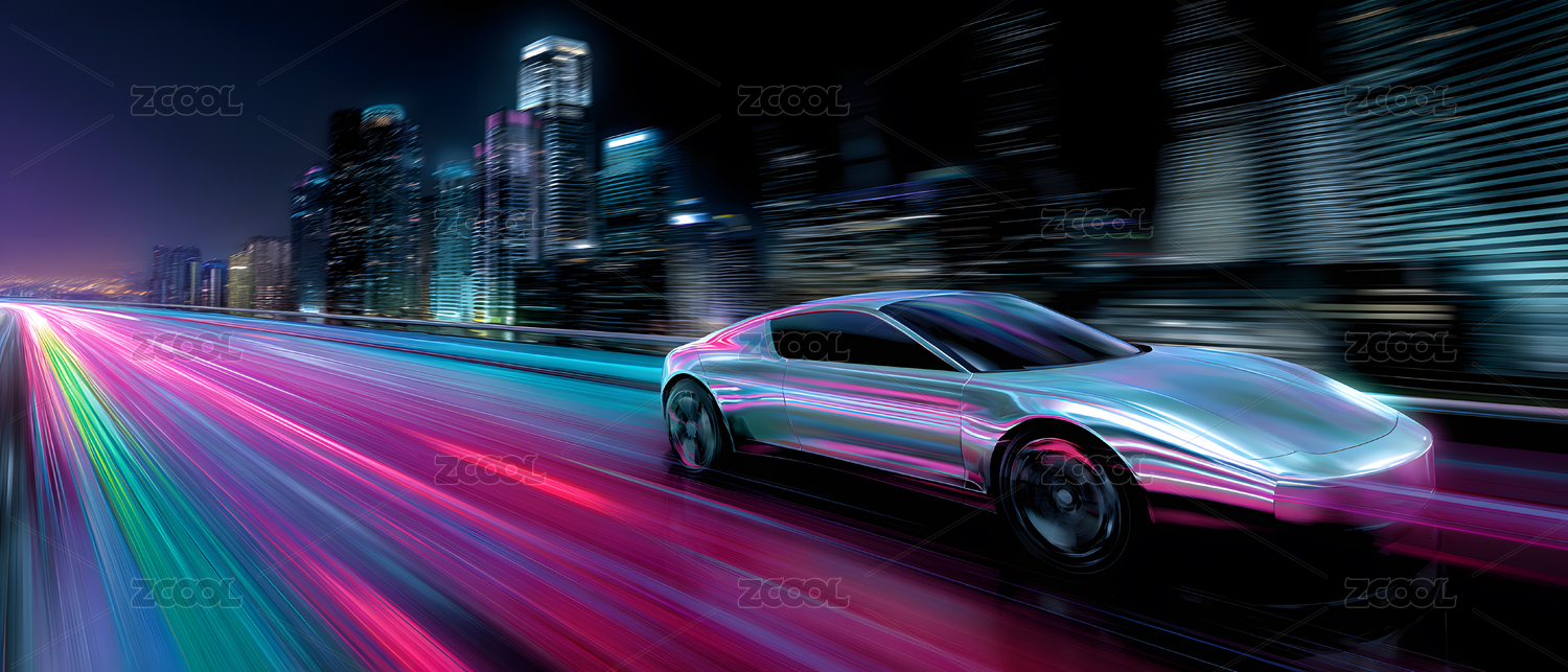 跑车,光轨,车灯,轮胎,车身,城市,高楼,路面,夜晚,灯光