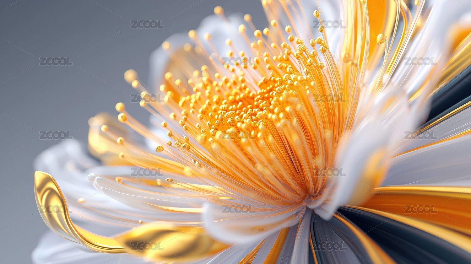 时尚高贵盛开金色花蕊白色花朵3D立体插画
