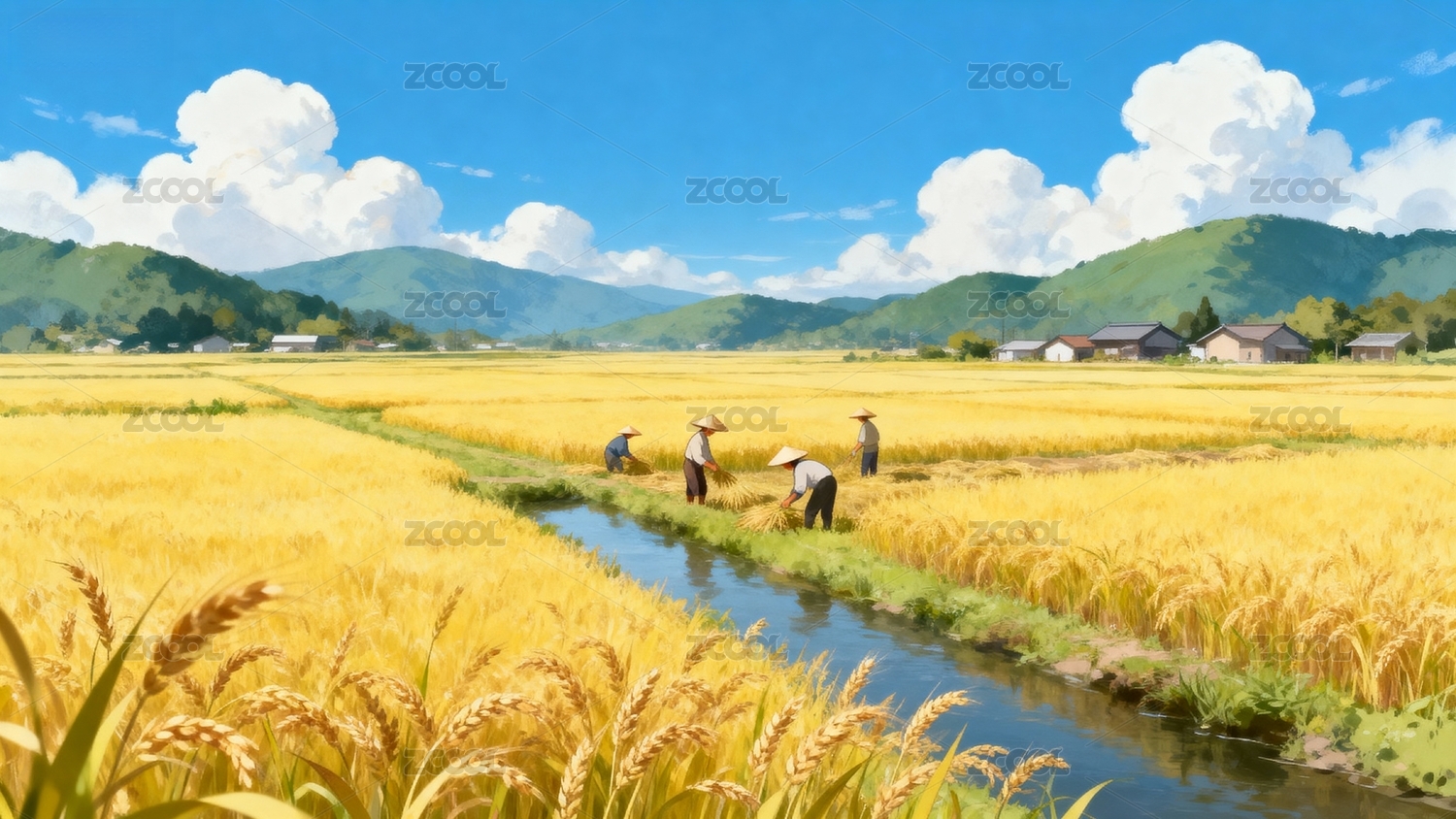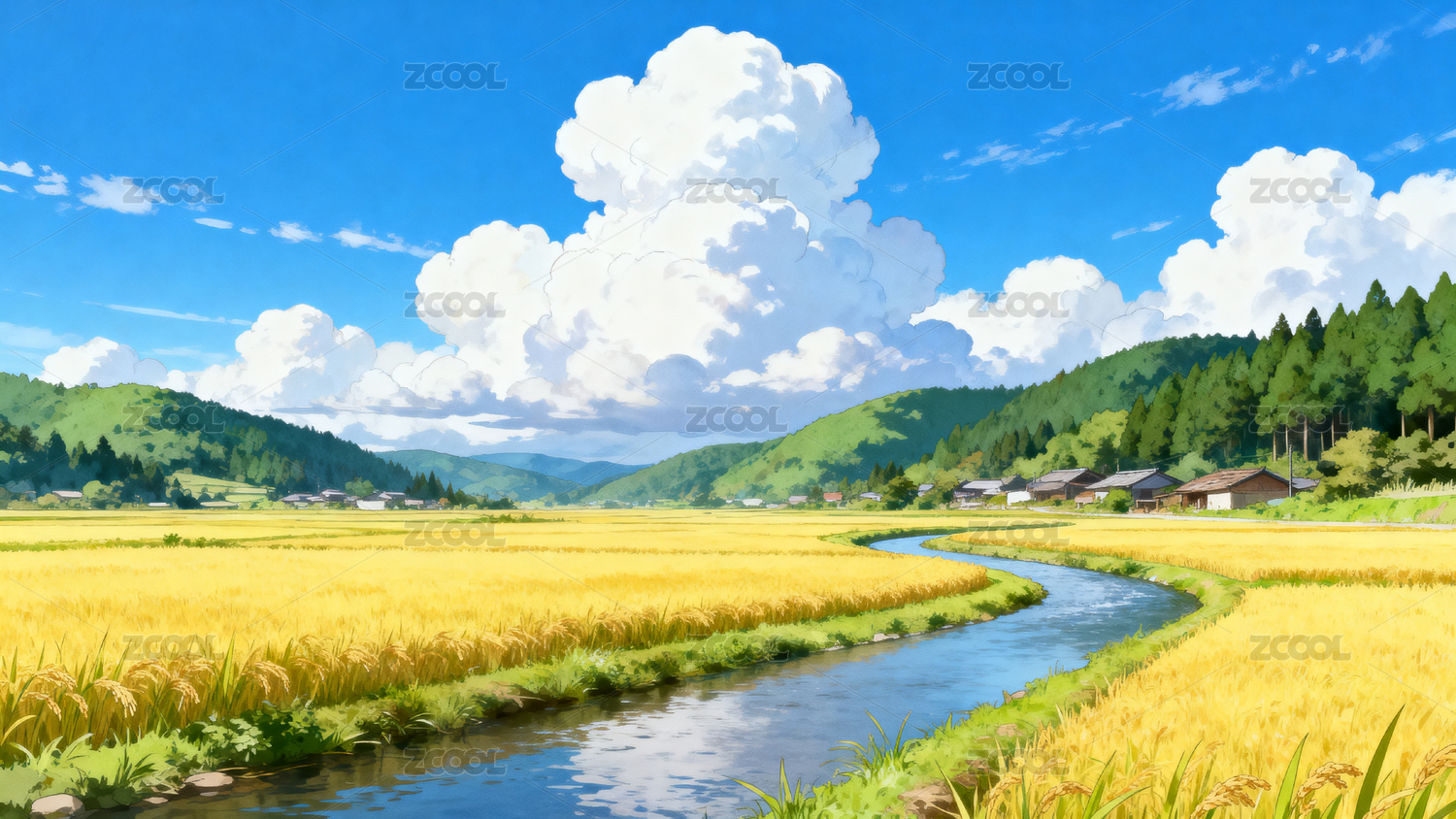 天空,绿色,自然,风景,房屋,白云,阳光,景色,远处,蓝天