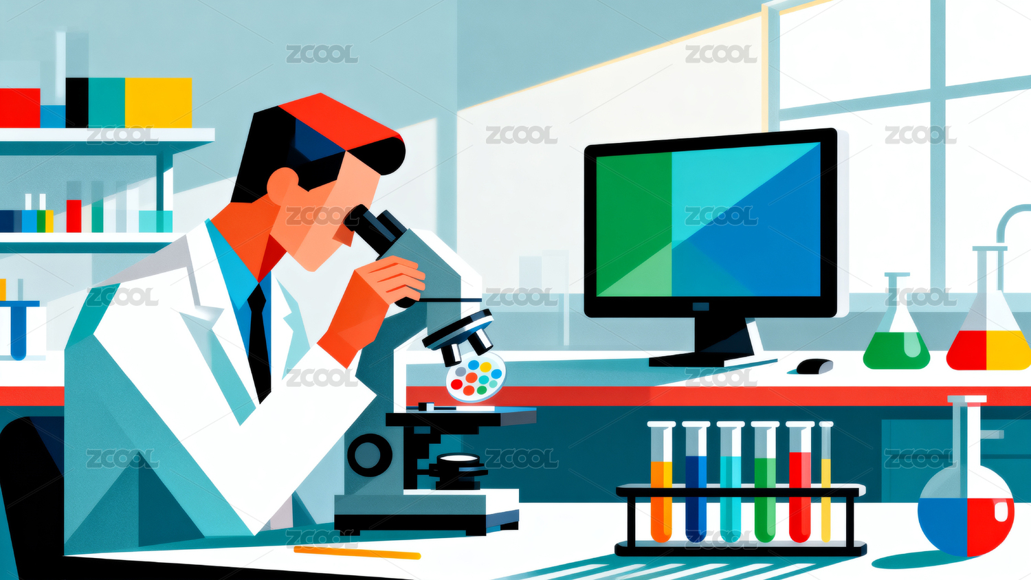 科学家实验室研究显微镜