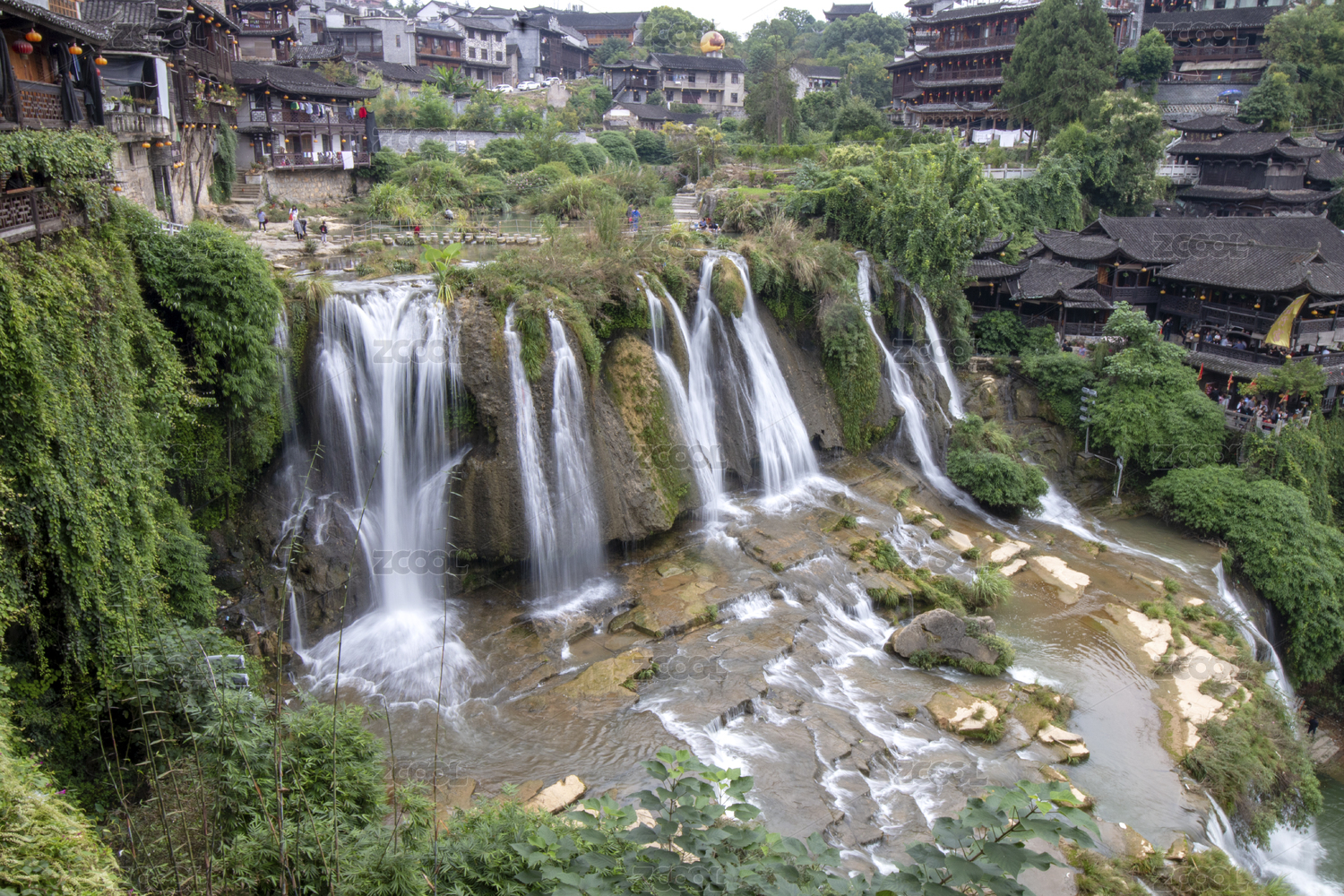 中国湖南湘西永顺县芙蓉古镇的瀑布风光