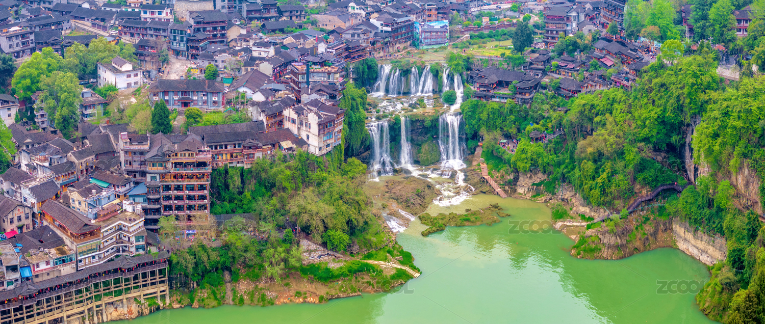 中国湖南湘西芙蓉镇大瀑布航拍风光