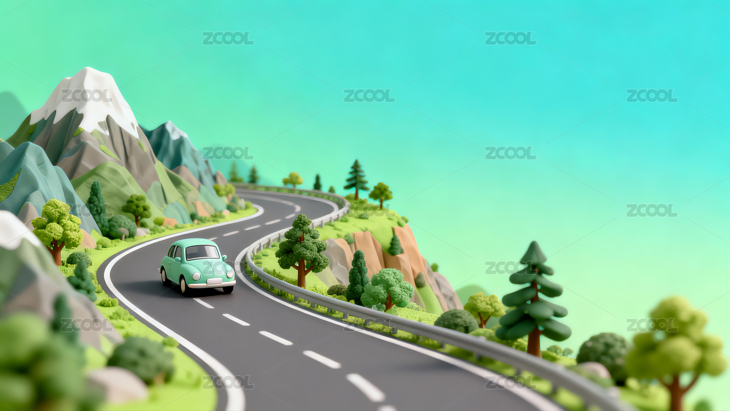 绿色,天空,车辆,自然,清新,公路,货车,山峦,森林,云雾