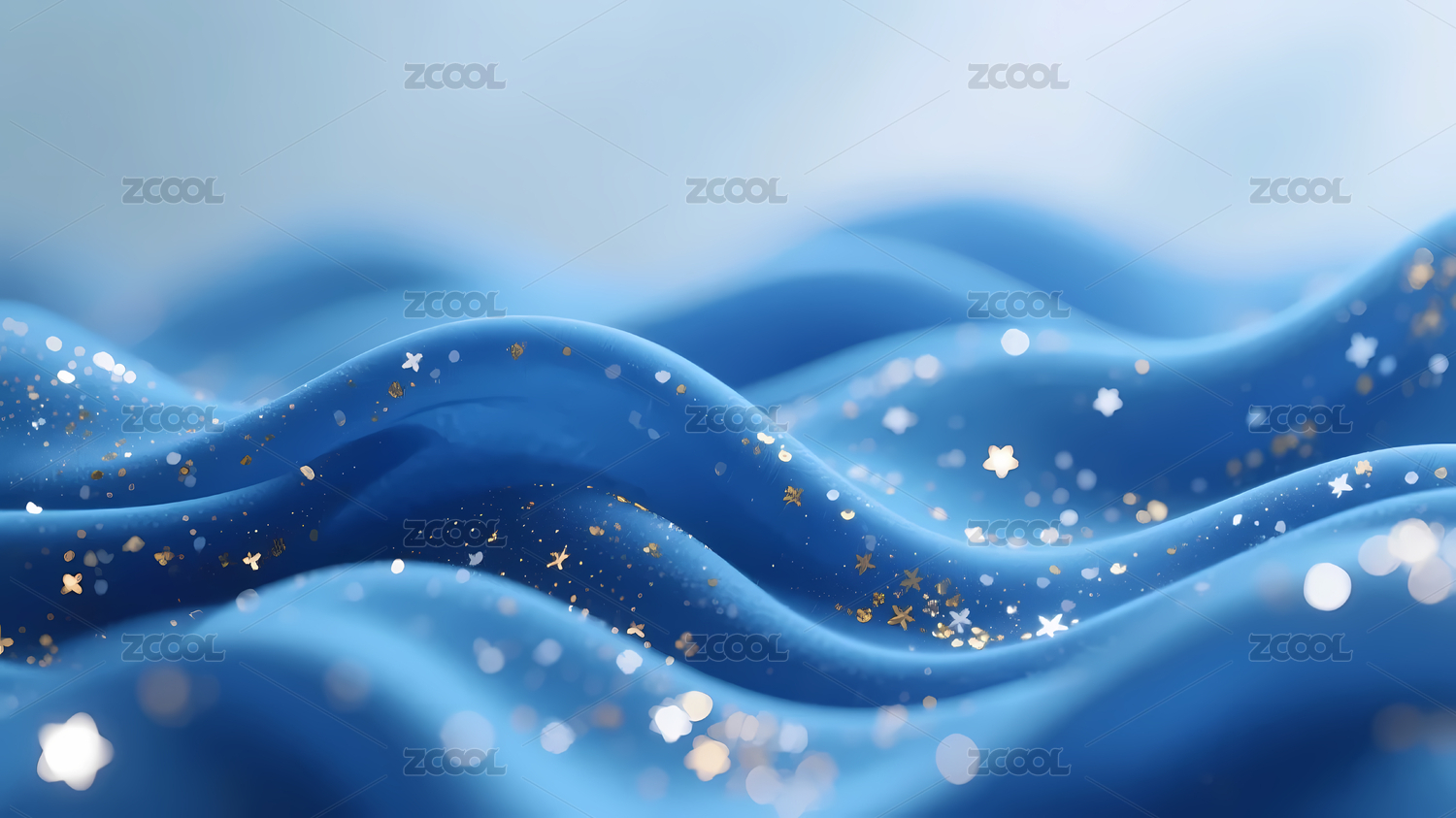 梦幻蓝色波浪与星光点缀的抽象艺术