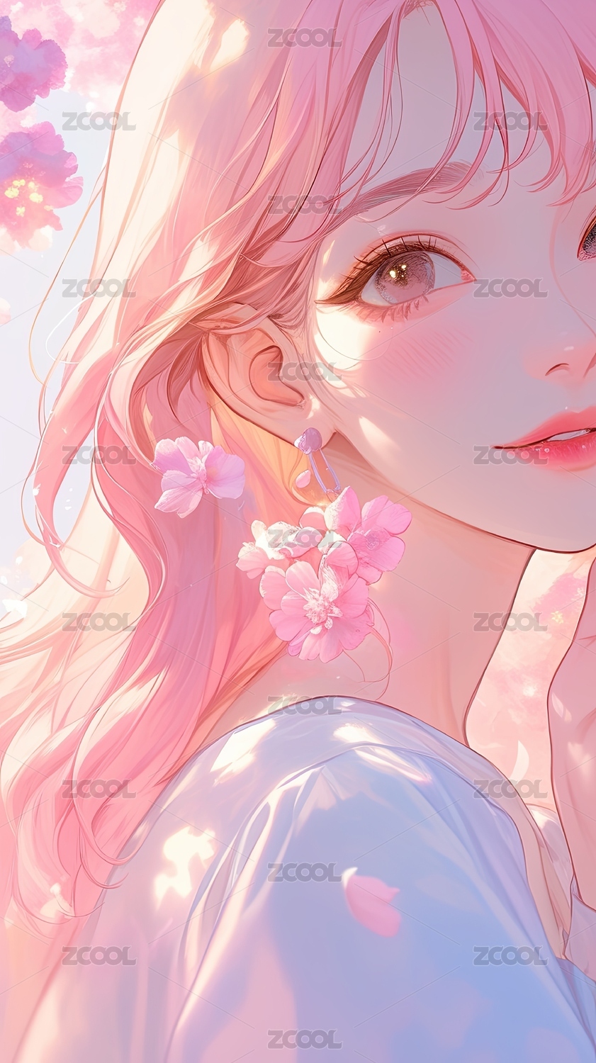 粉色长发少女与樱花