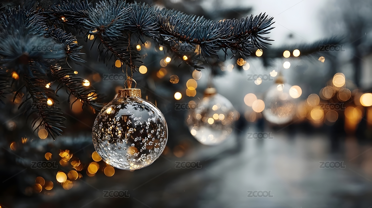 圣诞树上的装饰球与灯光