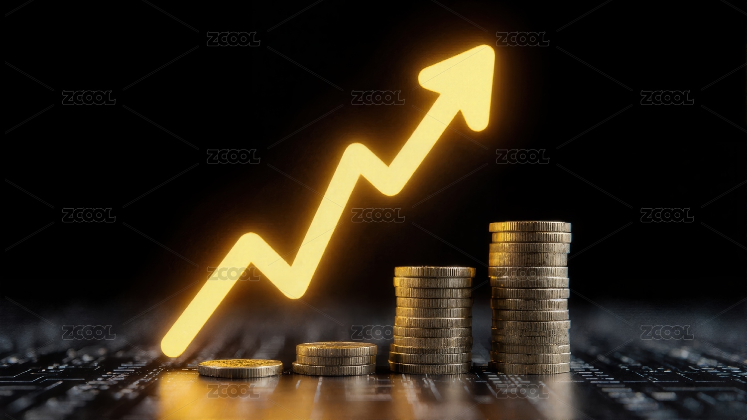 金币,堆叠,上升,箭头,财务,成长,经济,投资,市场,数据