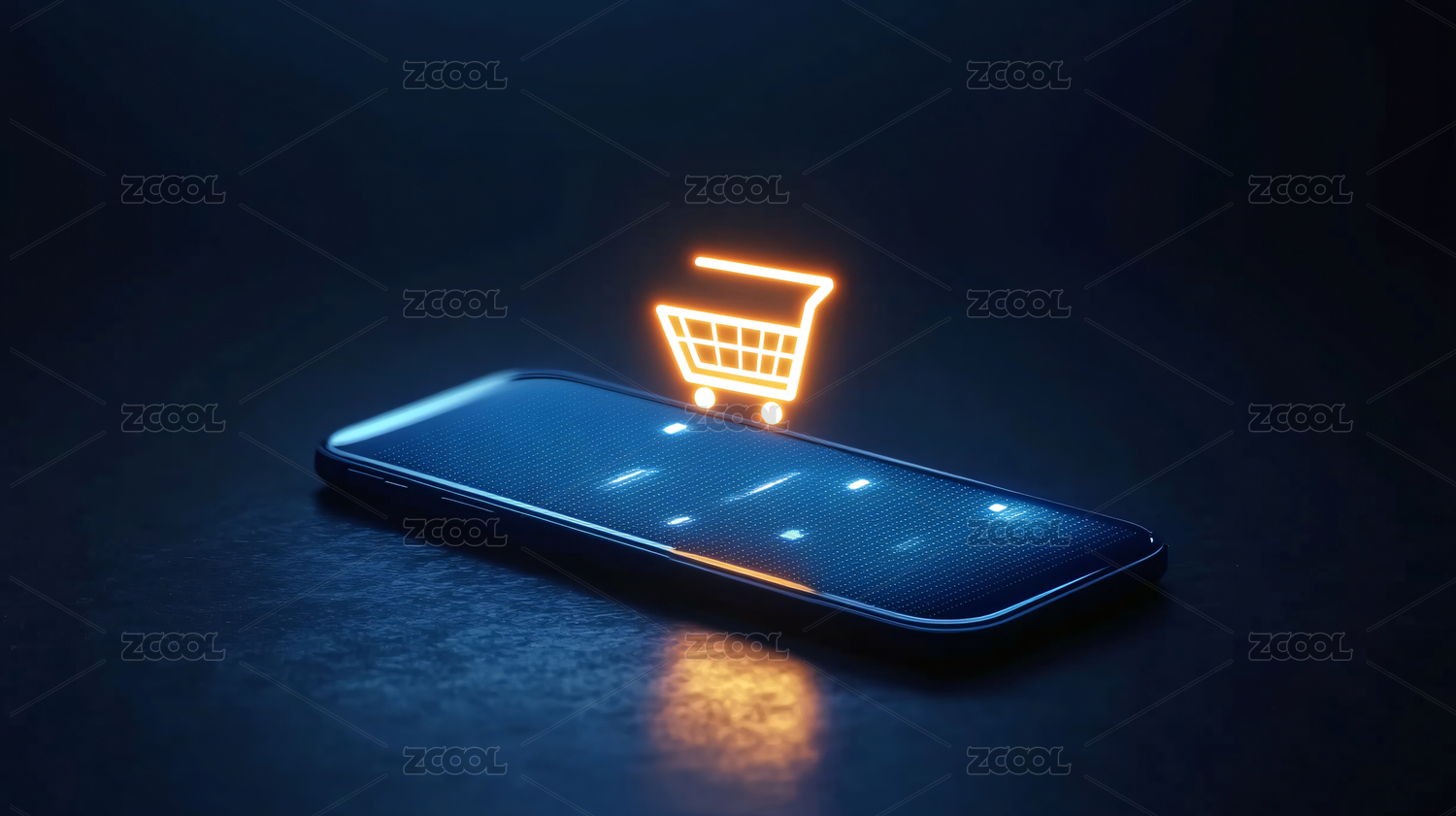手机,购物车,光影,电商,科技,智能,手机屏幕,购物,网络,商业