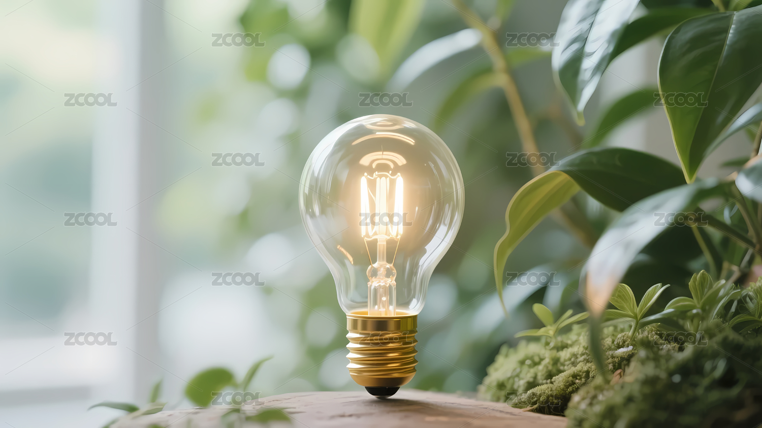 灯泡,电灯,灯丝,透明,玻璃,金属,底座,木质桌面,室内,光源