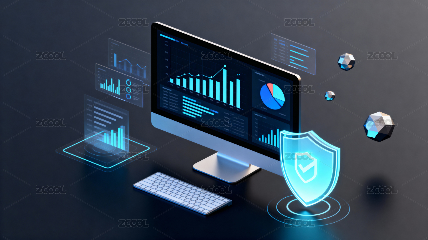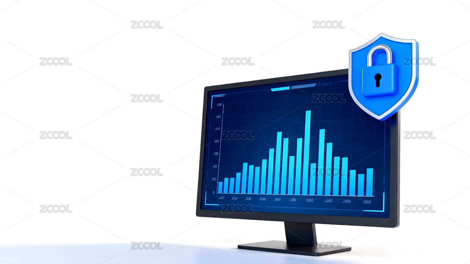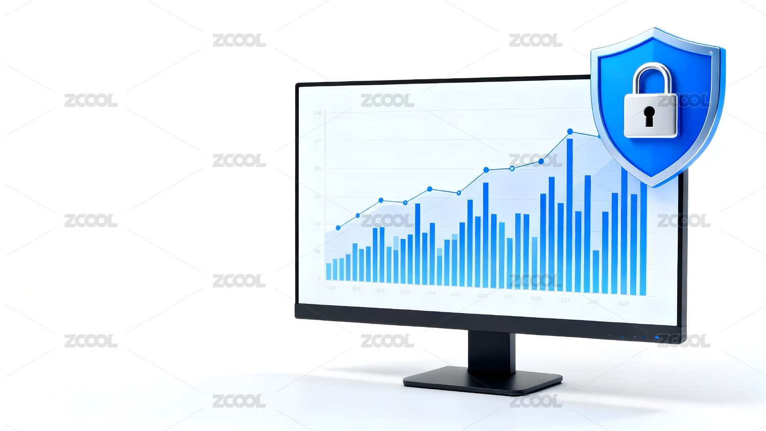 电脑屏幕数据图表与安全图标