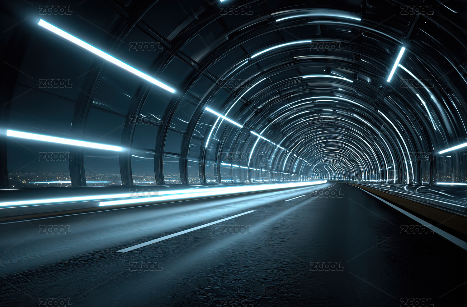 抽象未来主义隧道,带有发光霓虹线条和全息