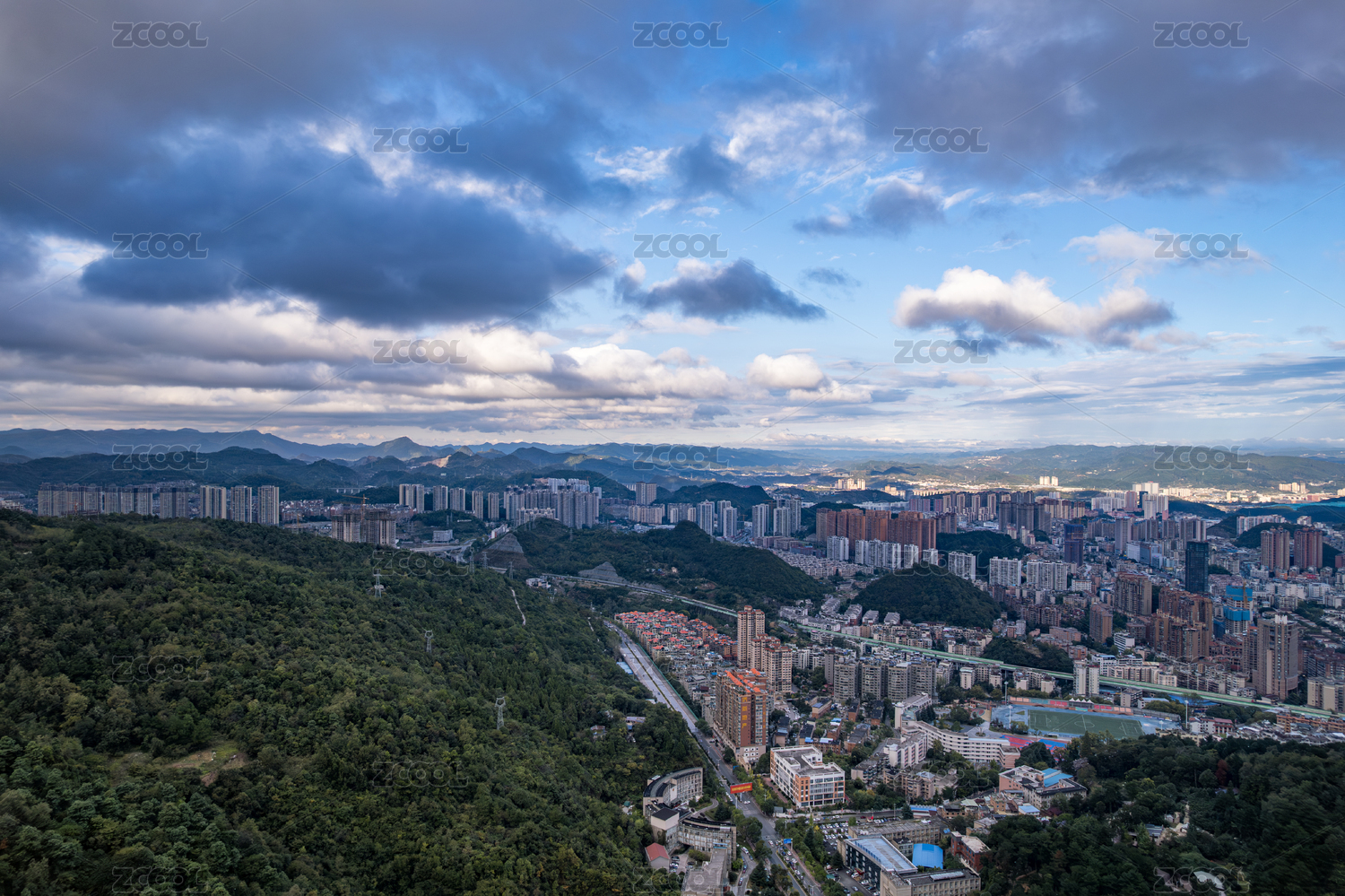 中国四川省巴中市黄昏望王山城区高楼建筑