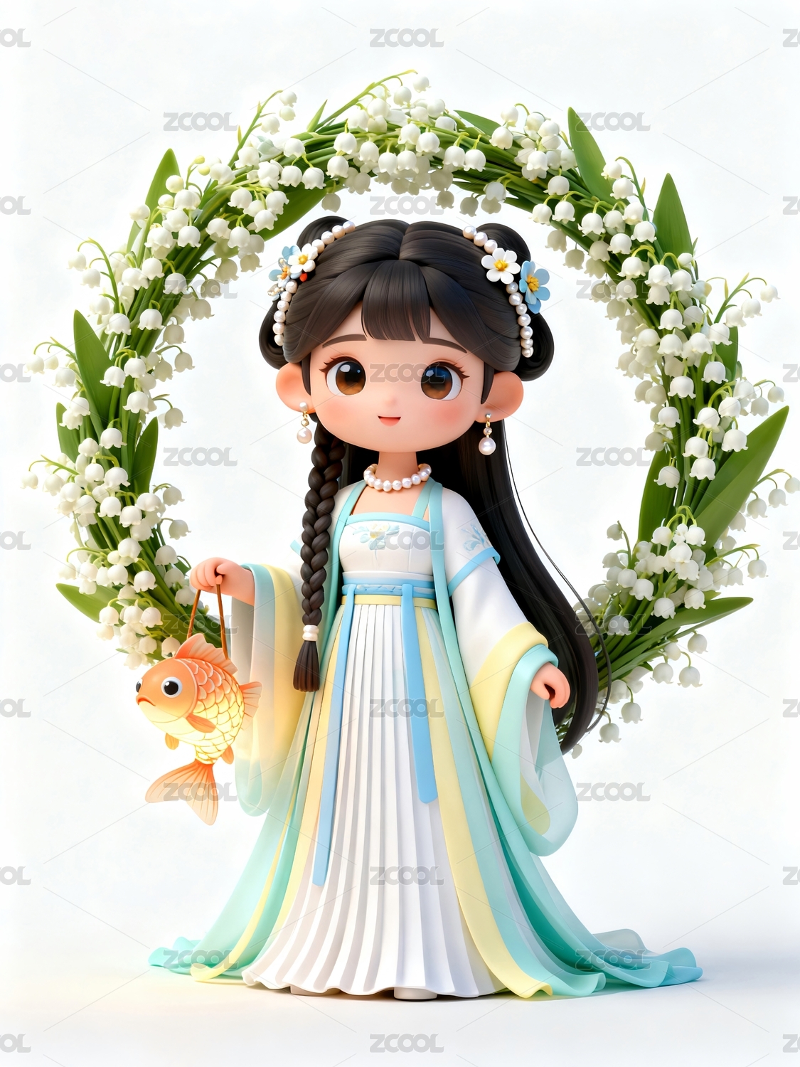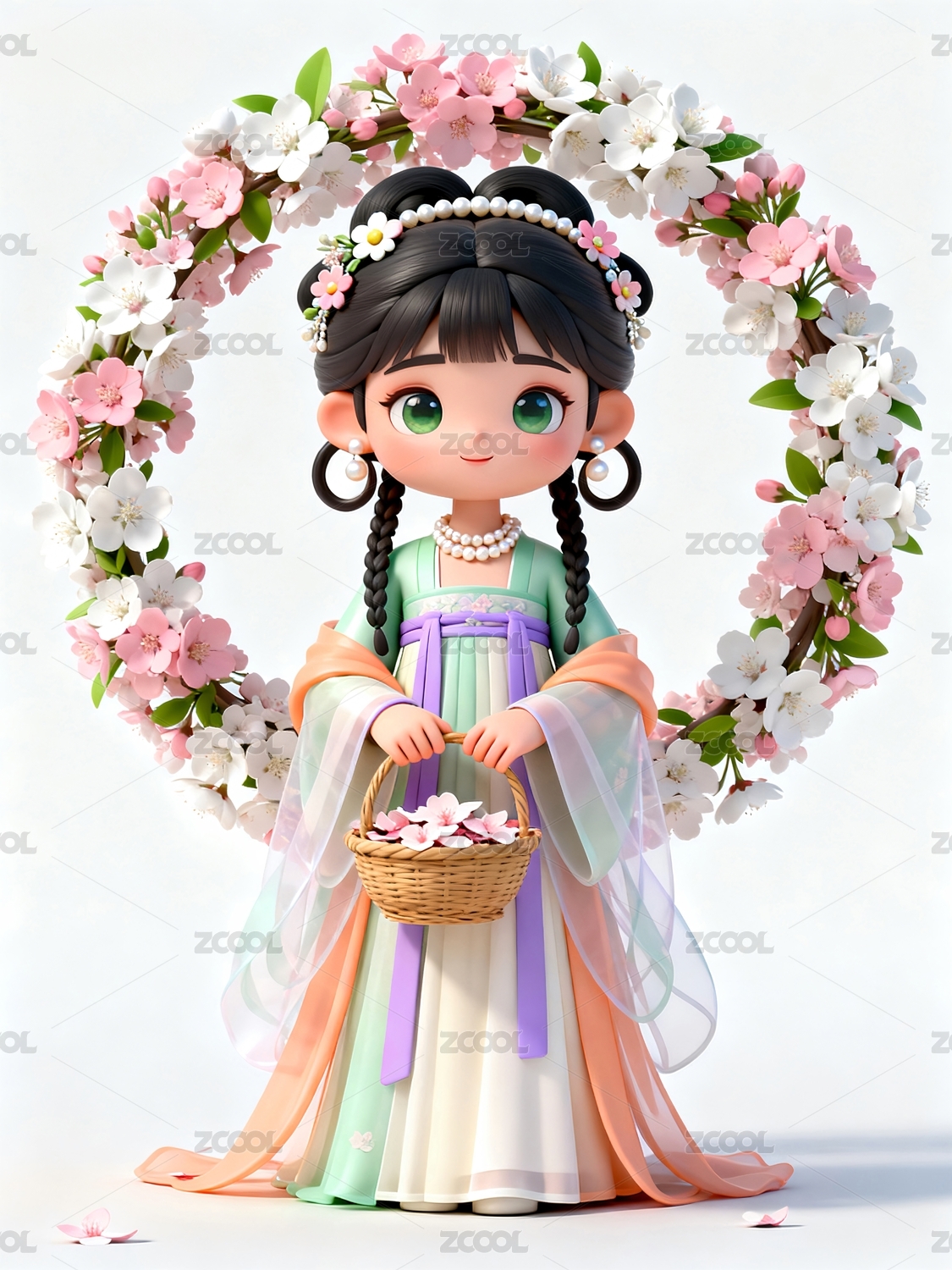 人物,花朵,环绕,长发,绿色,白色,粉色,裙子,手持,可爱