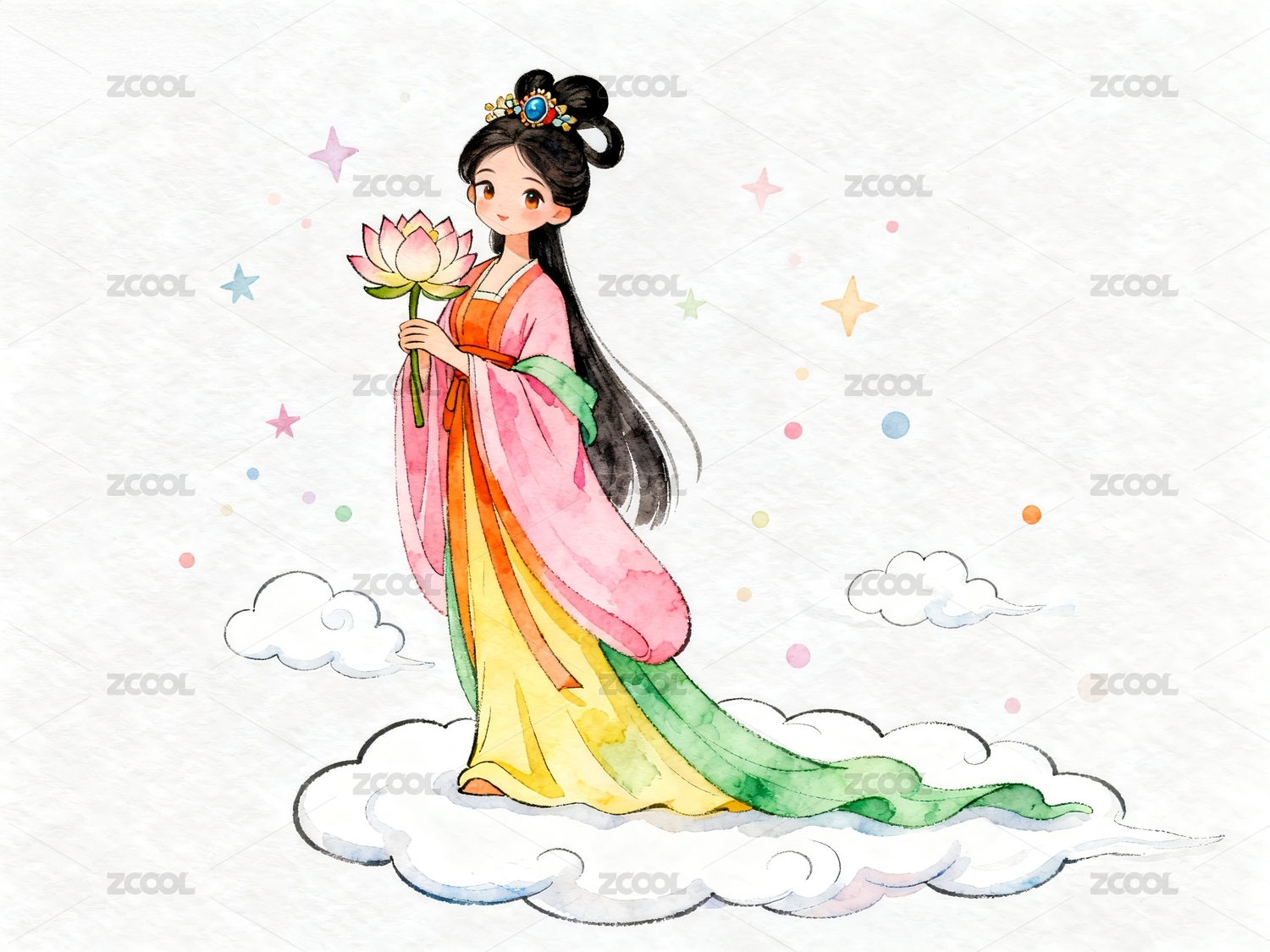 仙女手持莲花云彩