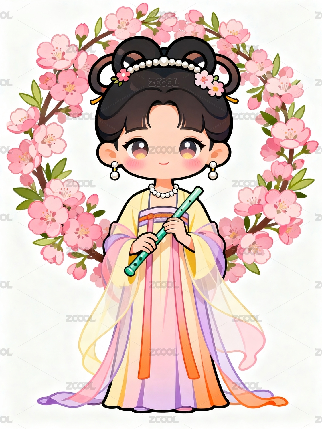 人物,花环,头发,黄色,白色,古典,卡通,姿态,站立,花朵