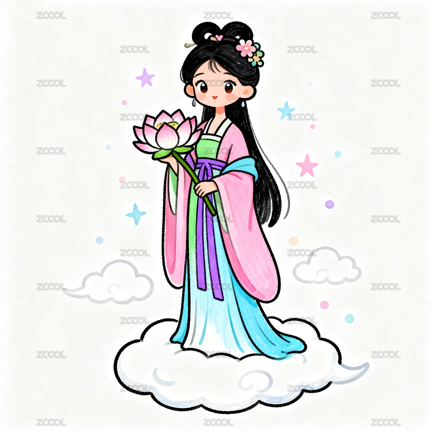 人物,白色,卡通,姿态,头饰,点缀,可爱,背景,仙女,云朵