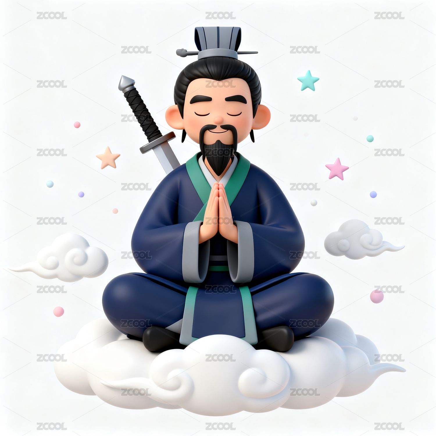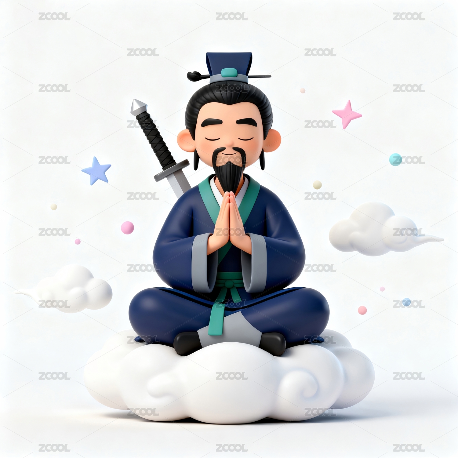 人物持剑云朵盘坐