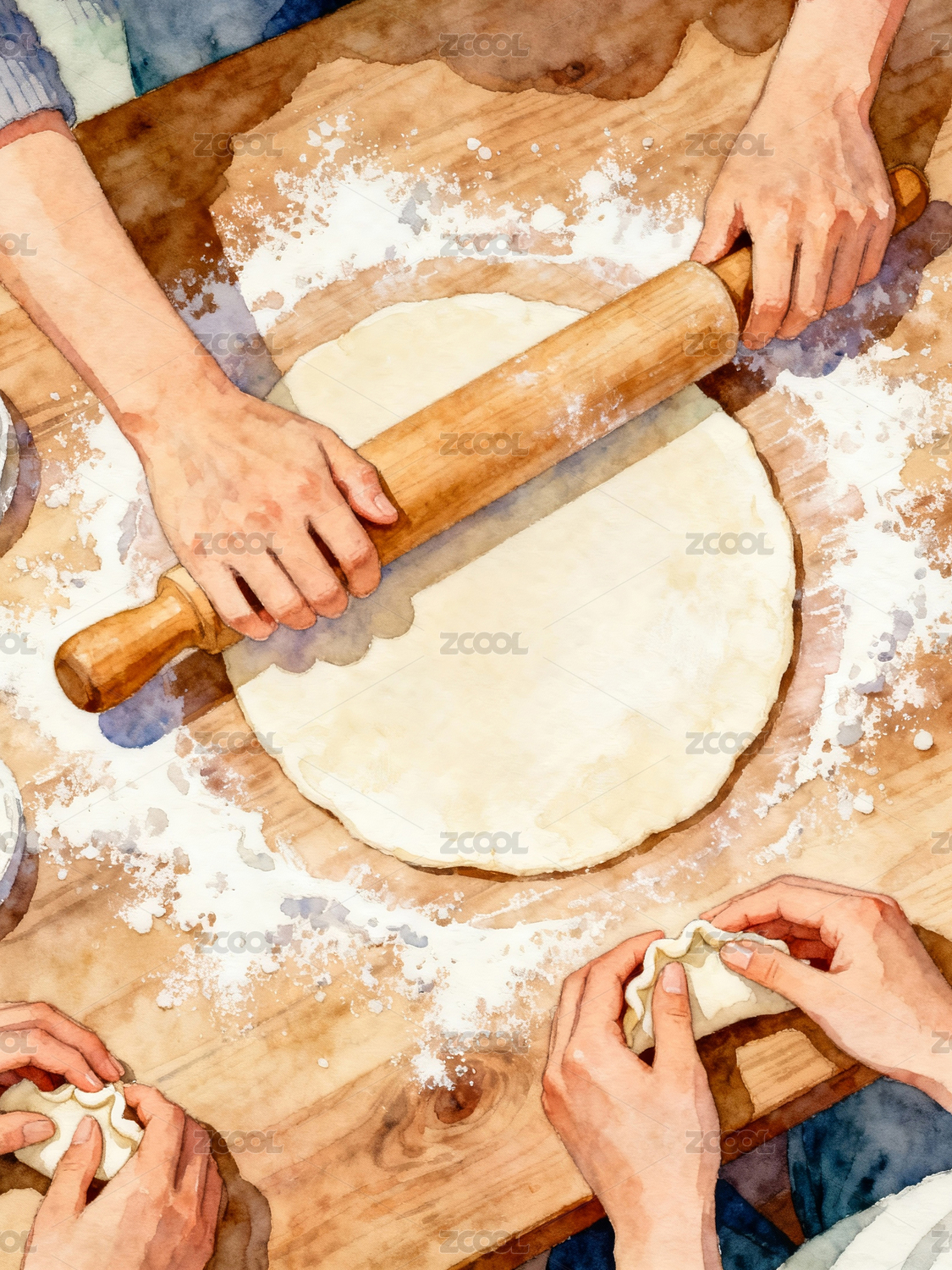 食物,烹饪,厨房,桌子,擀面,揉面,手部,面团,馅料,制作