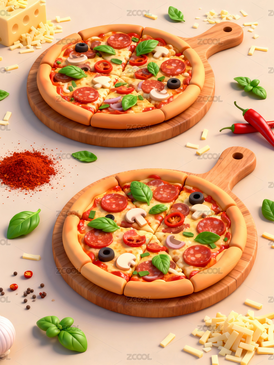 白色背景上有意大利辣香肠和罗勒的披萨特写