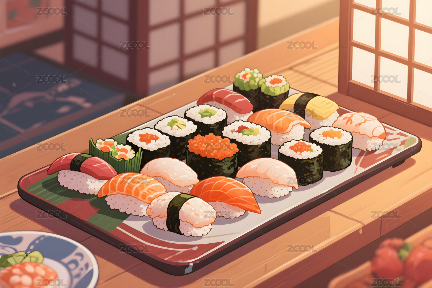 插画中的美味寿司拼盘