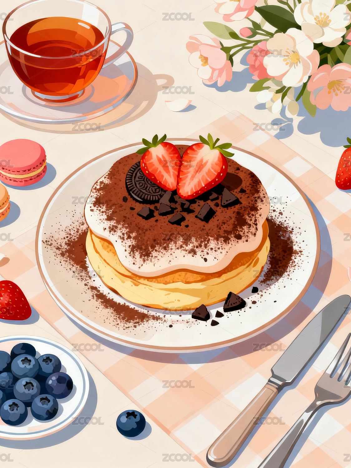 食物,餐具,勺子,盘子,餐桌,桌面,茶水,点心,水果,奶油
