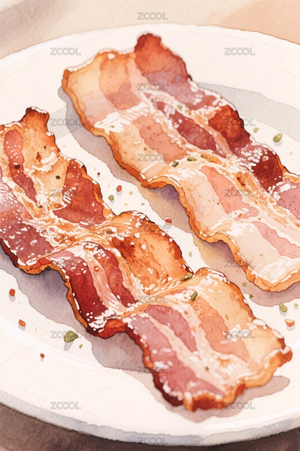 培根煎烤插画