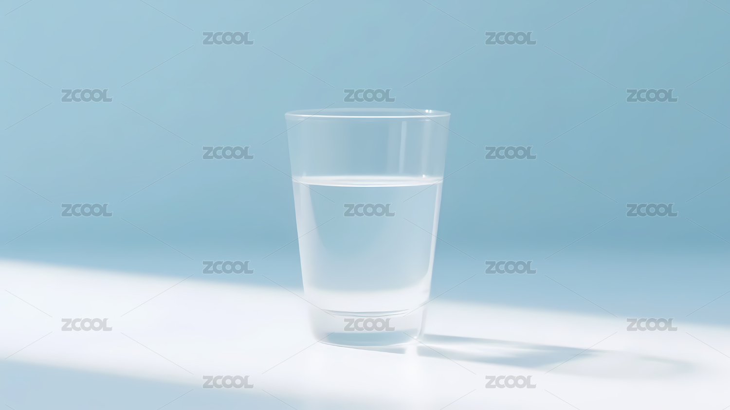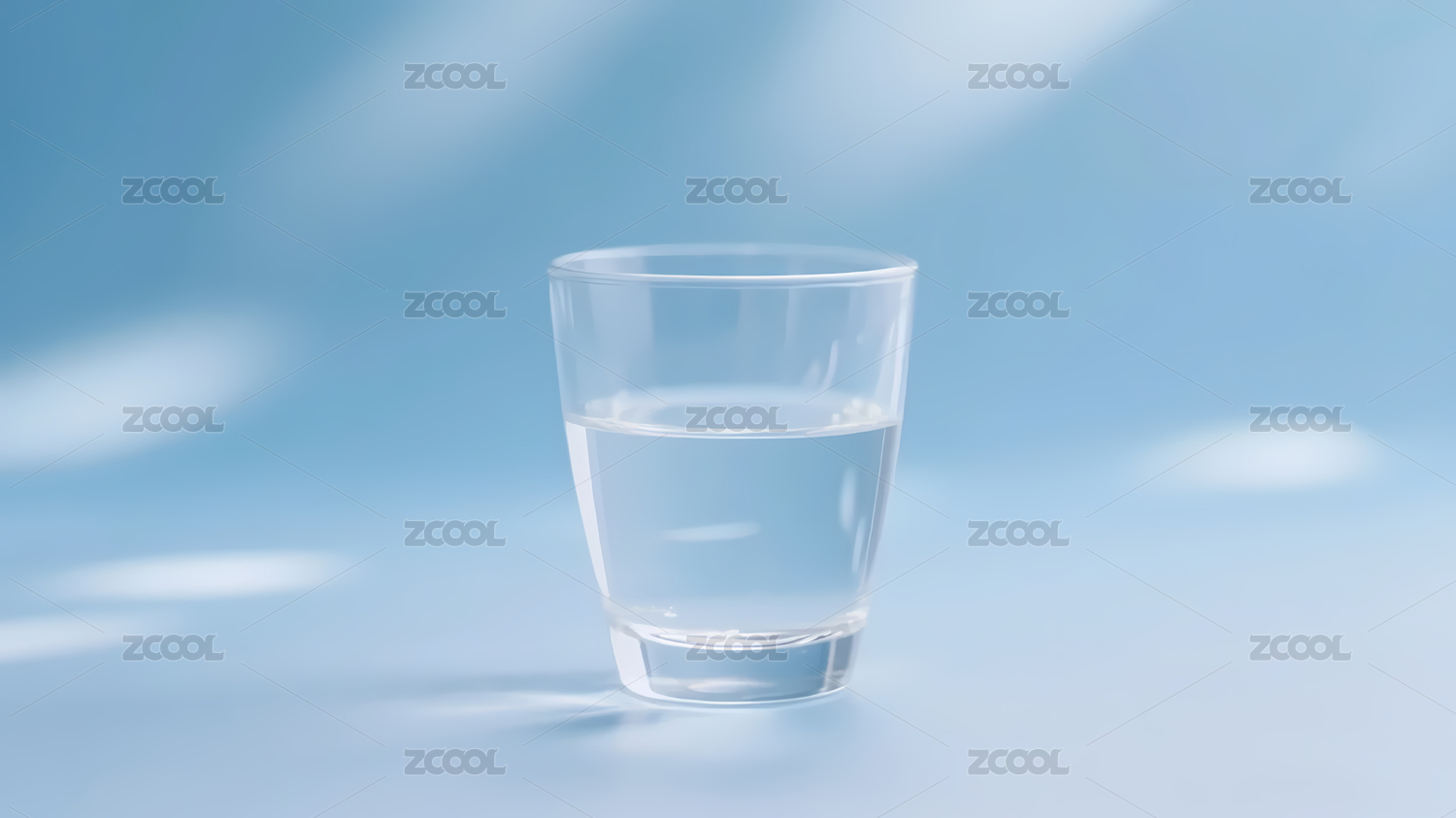 透明水杯与浅蓝色渐变背景