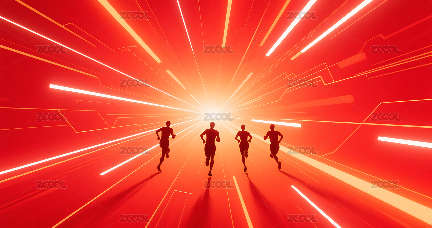 红色背景配橙色渐变灯带团队竞赛概念