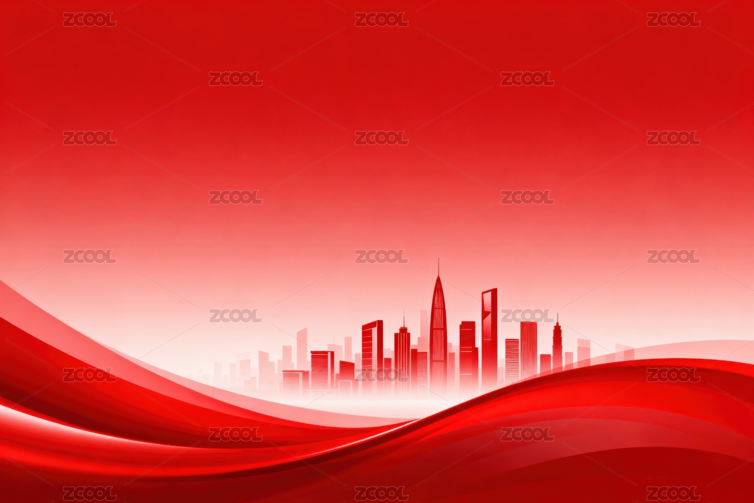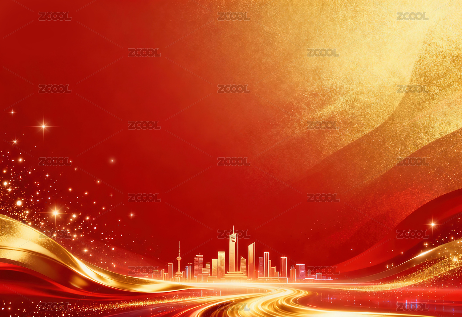 红金色绸缎布料城市建筑天际线商务庆典背景