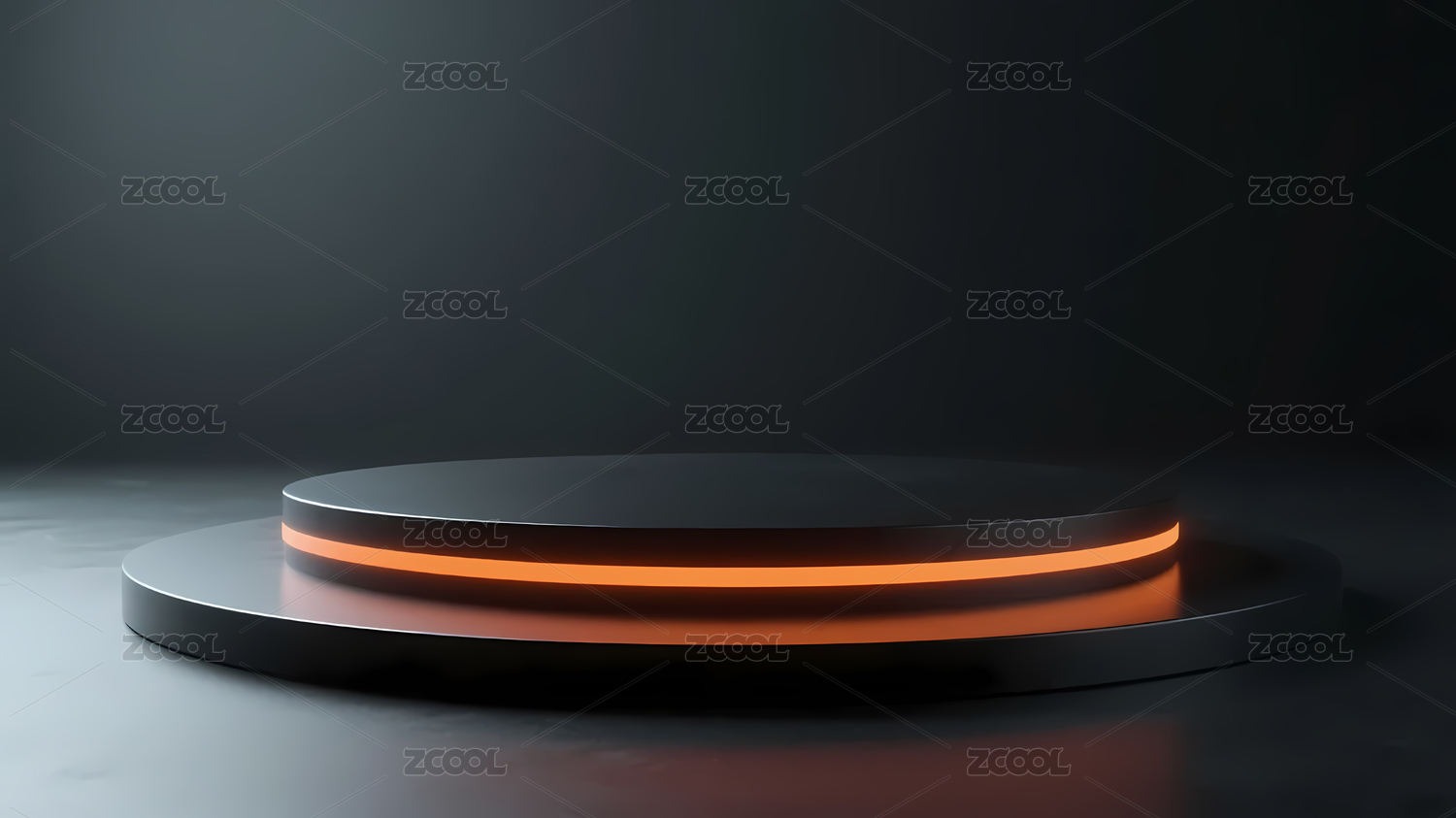 黑色圆平台与橙色光带的未来感设计