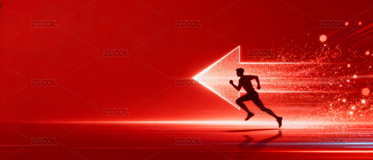 红色背景中奔跑的人影与箭头光效