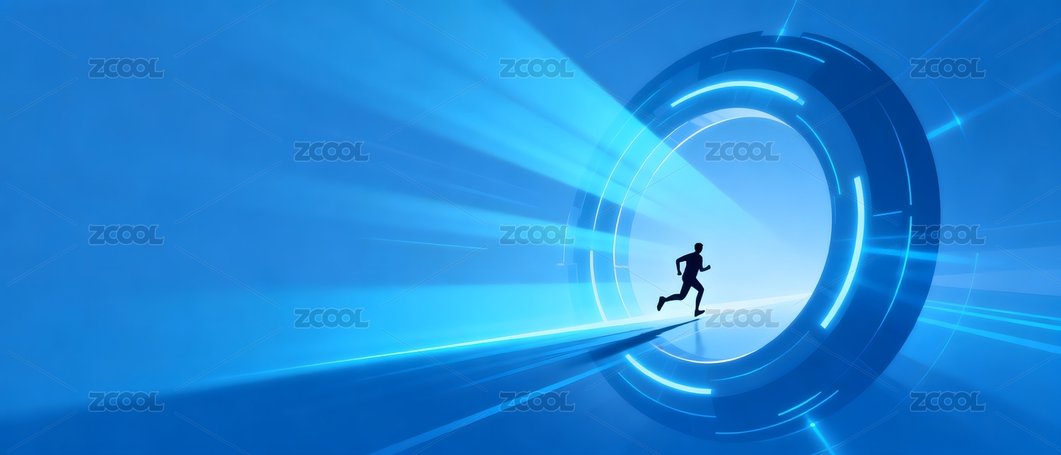 蓝色光圈通道中奔跑的人影