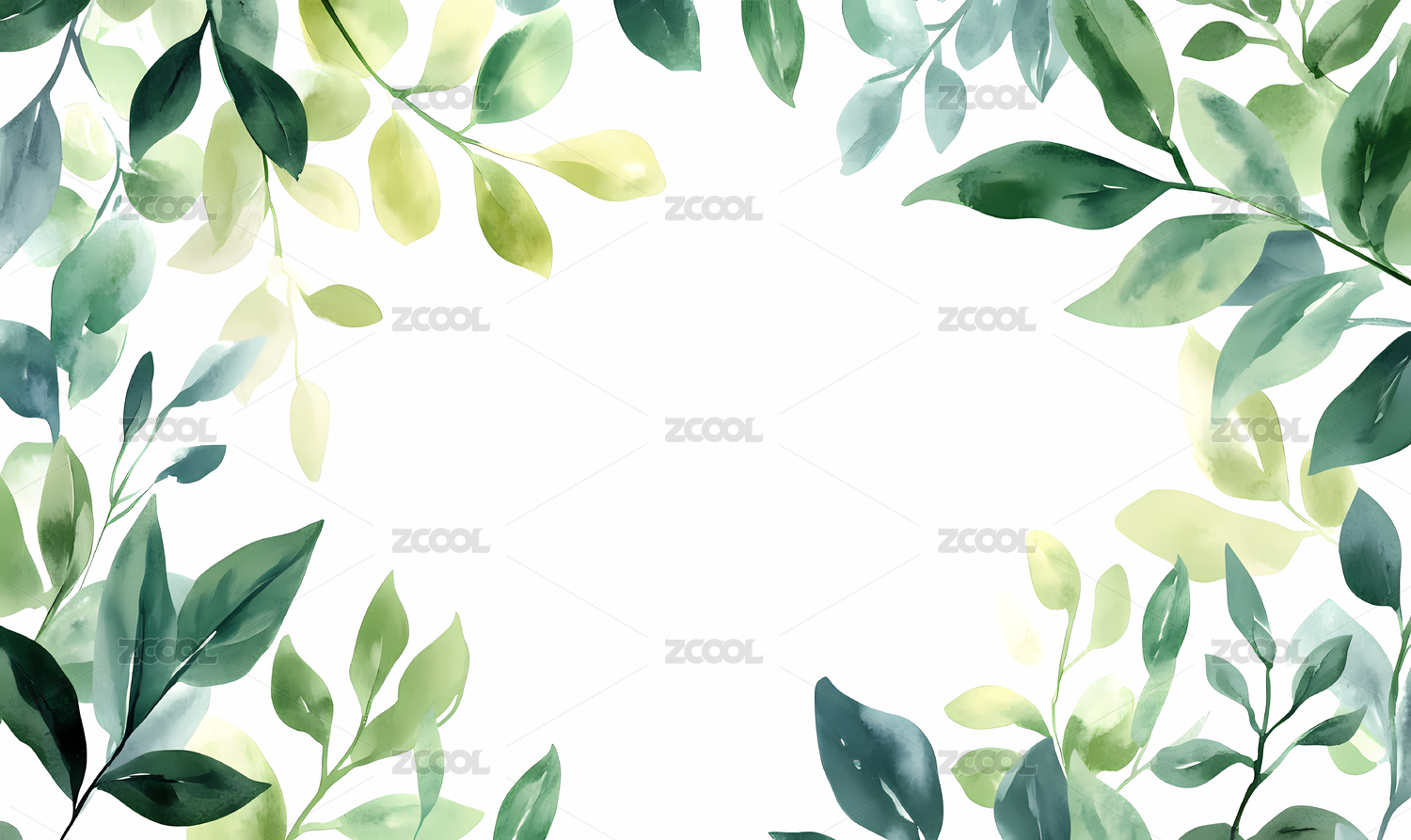 水彩绿色植物边框背景
