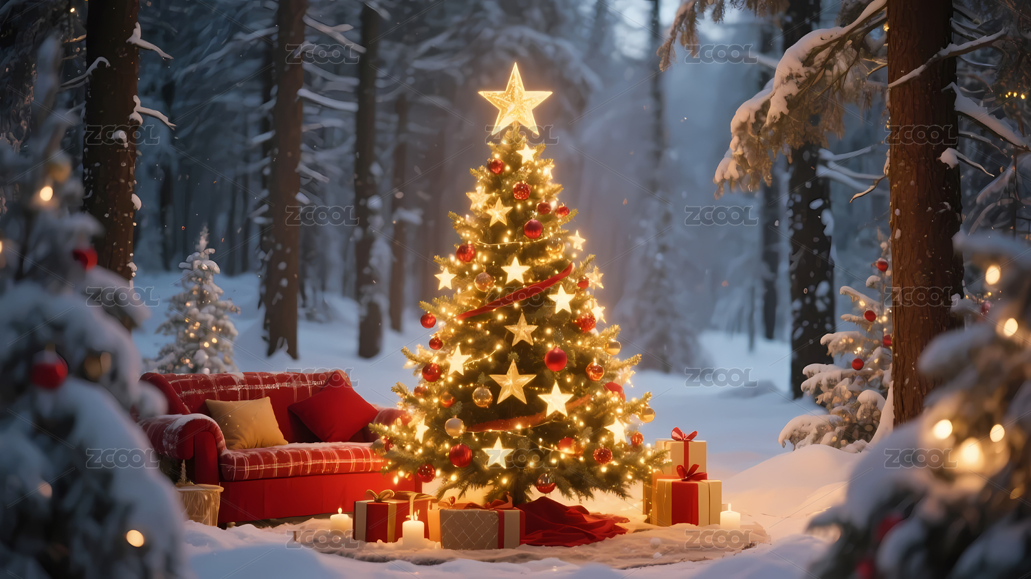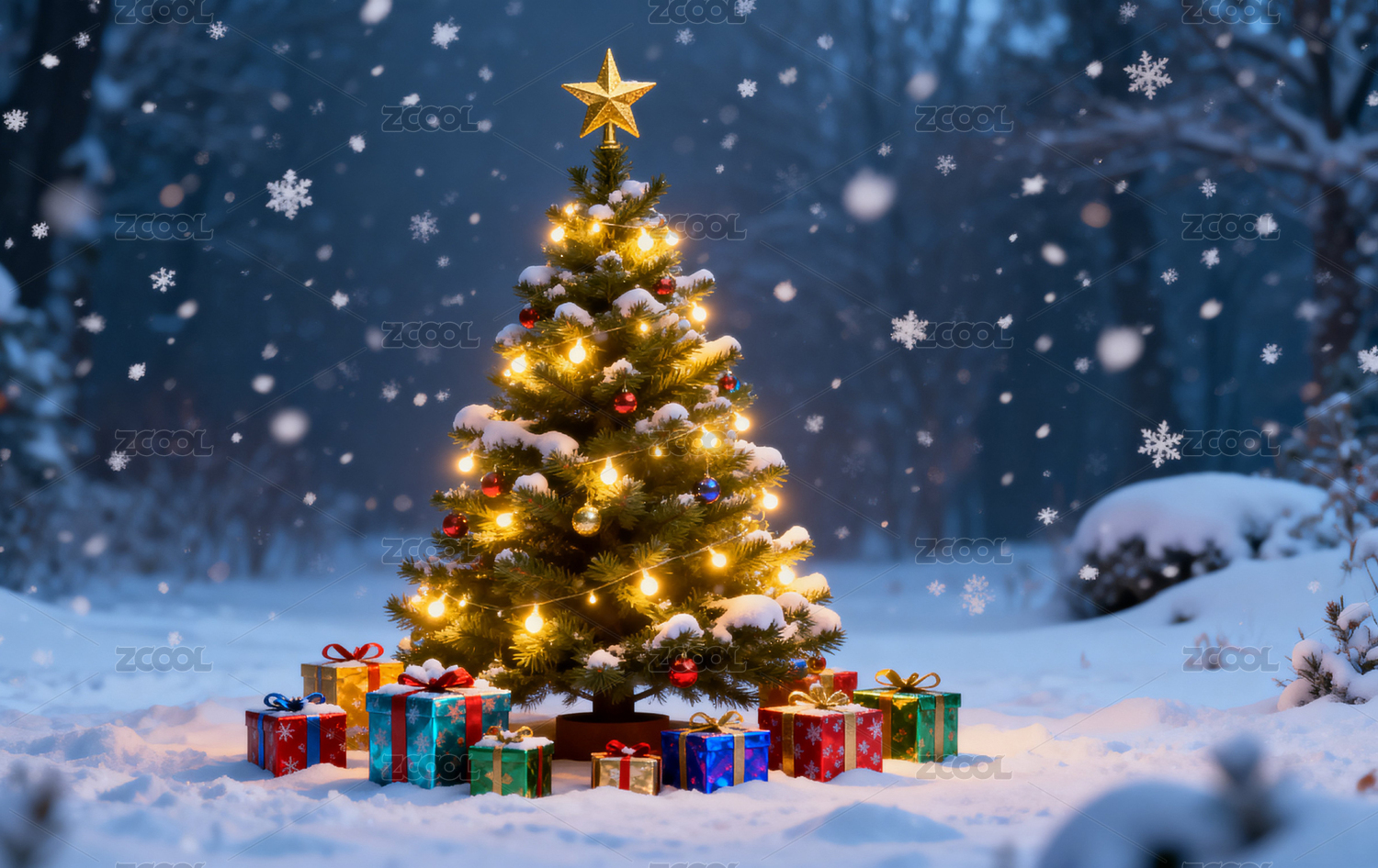 蓝色,装饰,金色,白色,圣诞树,雪花,礼物,灯饰,节日,温馨
