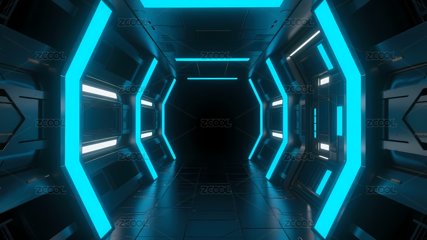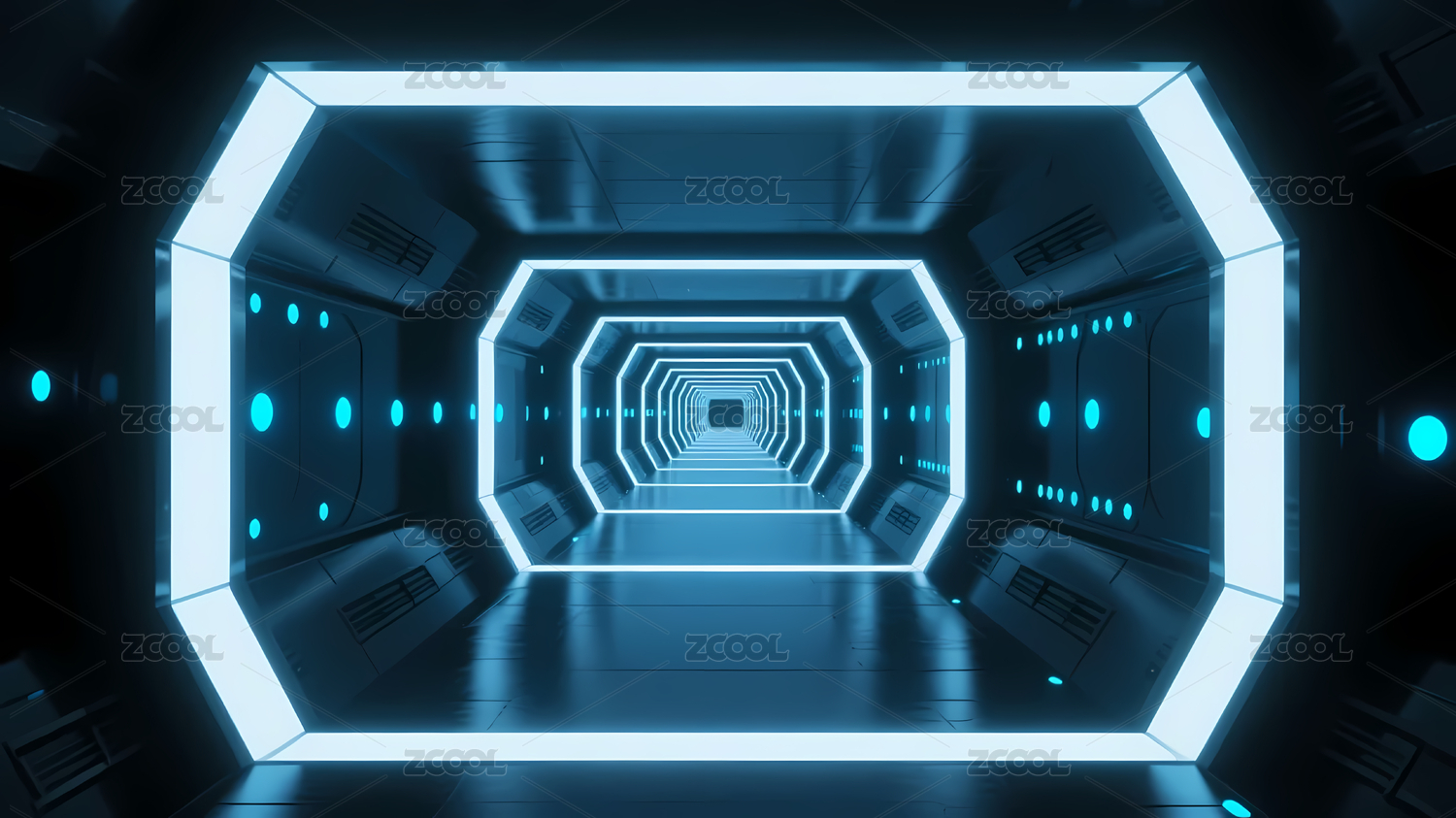 蓝色,线条,科技,发光,神秘,冷色,光圈,六边形,隧道,圆形