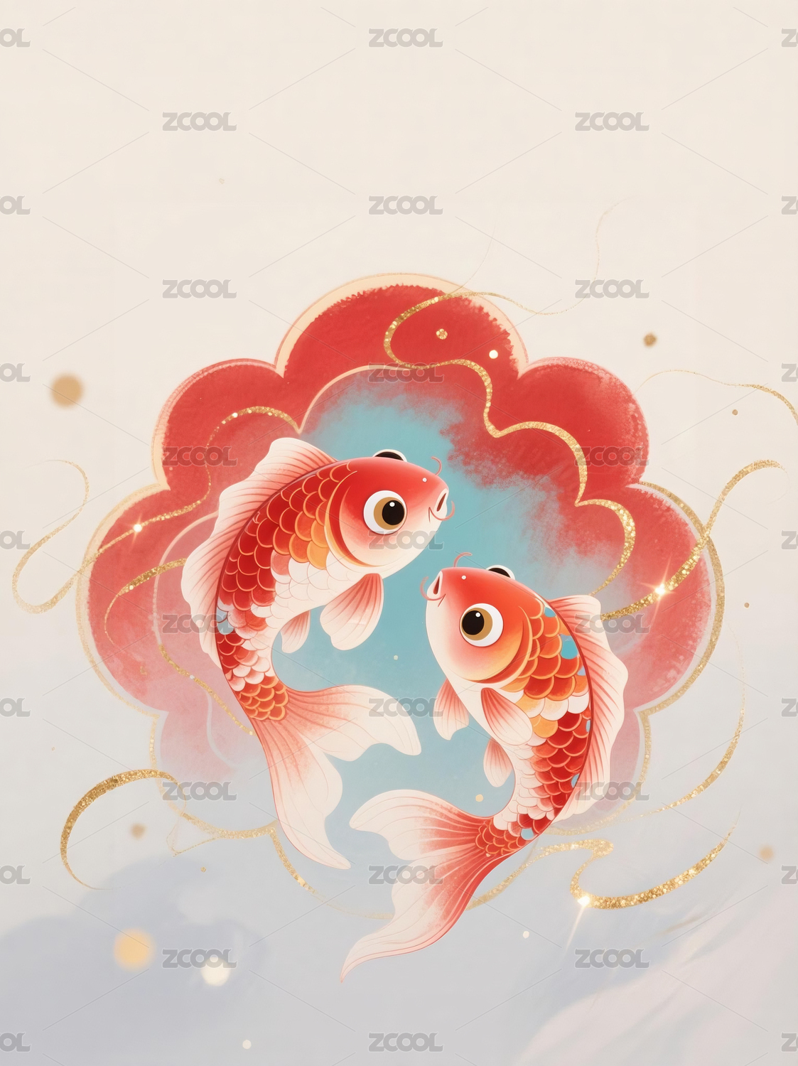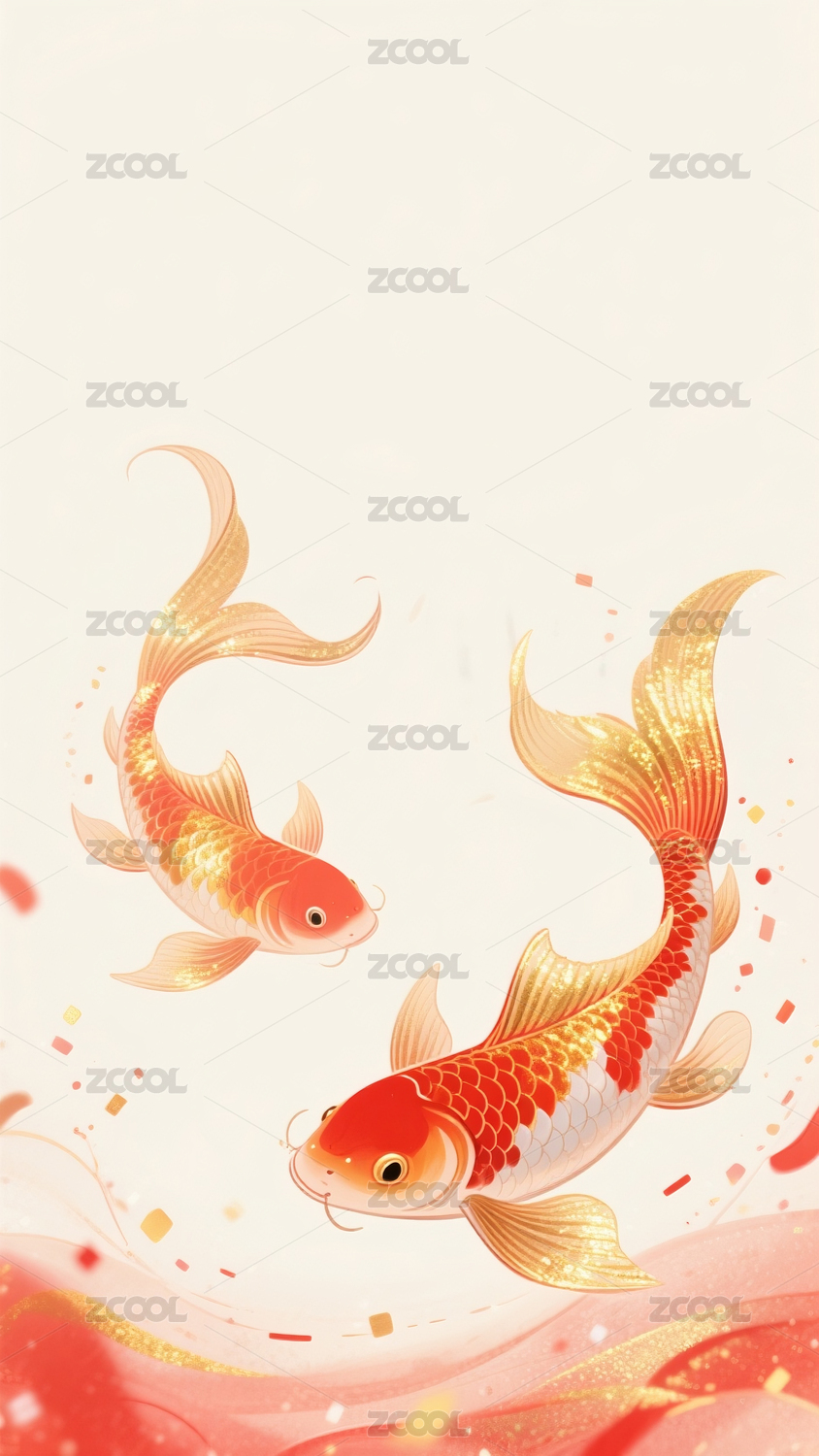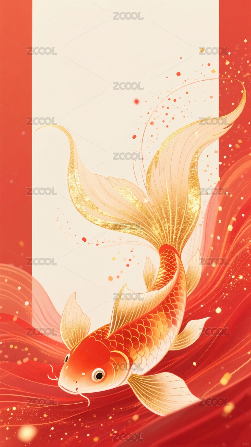 春节,插画,除夕,新年,鲤鱼,鱼类,红色,中国文化,锦鲤,运气